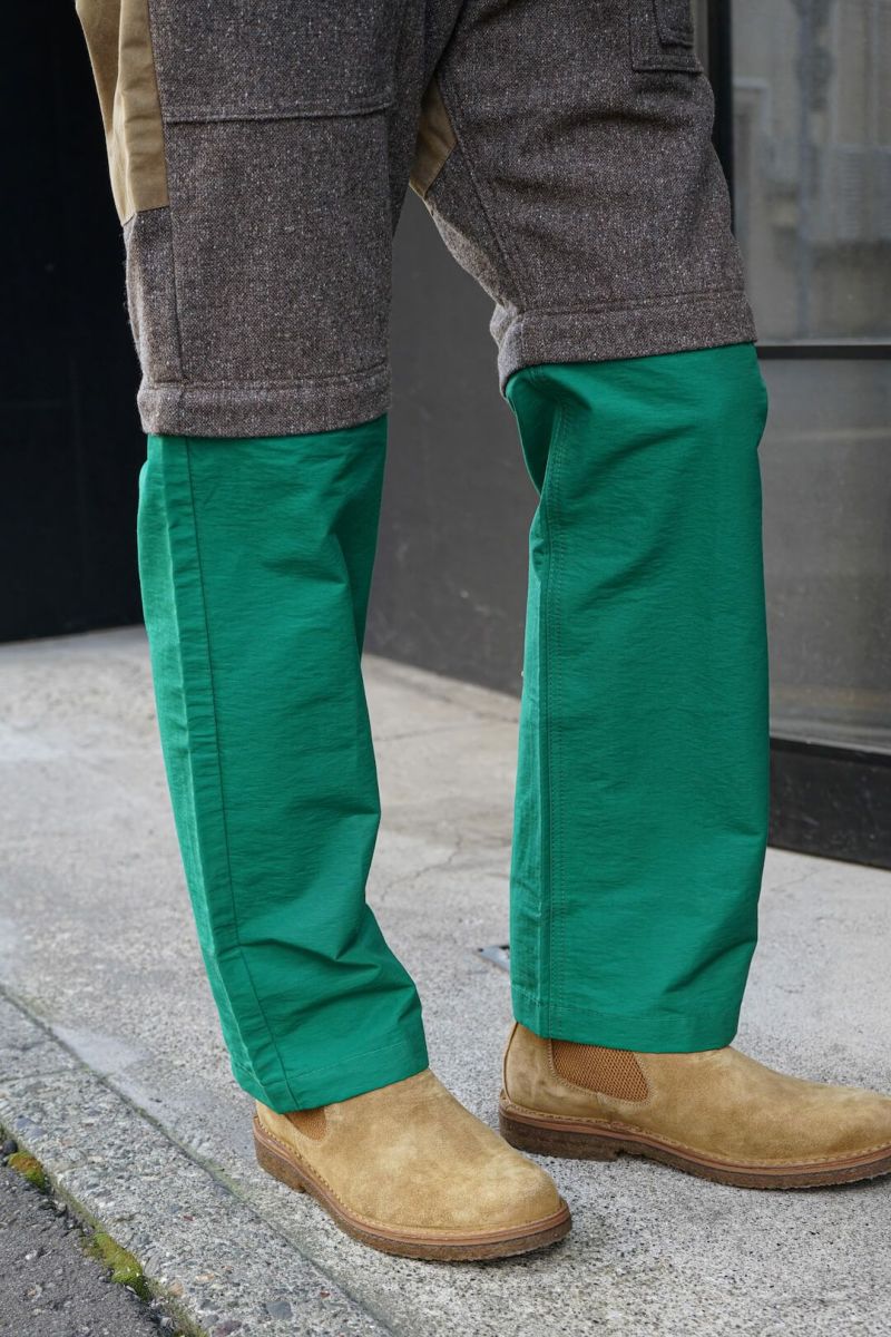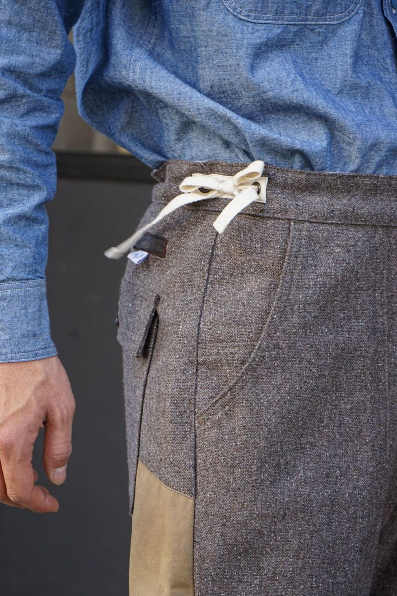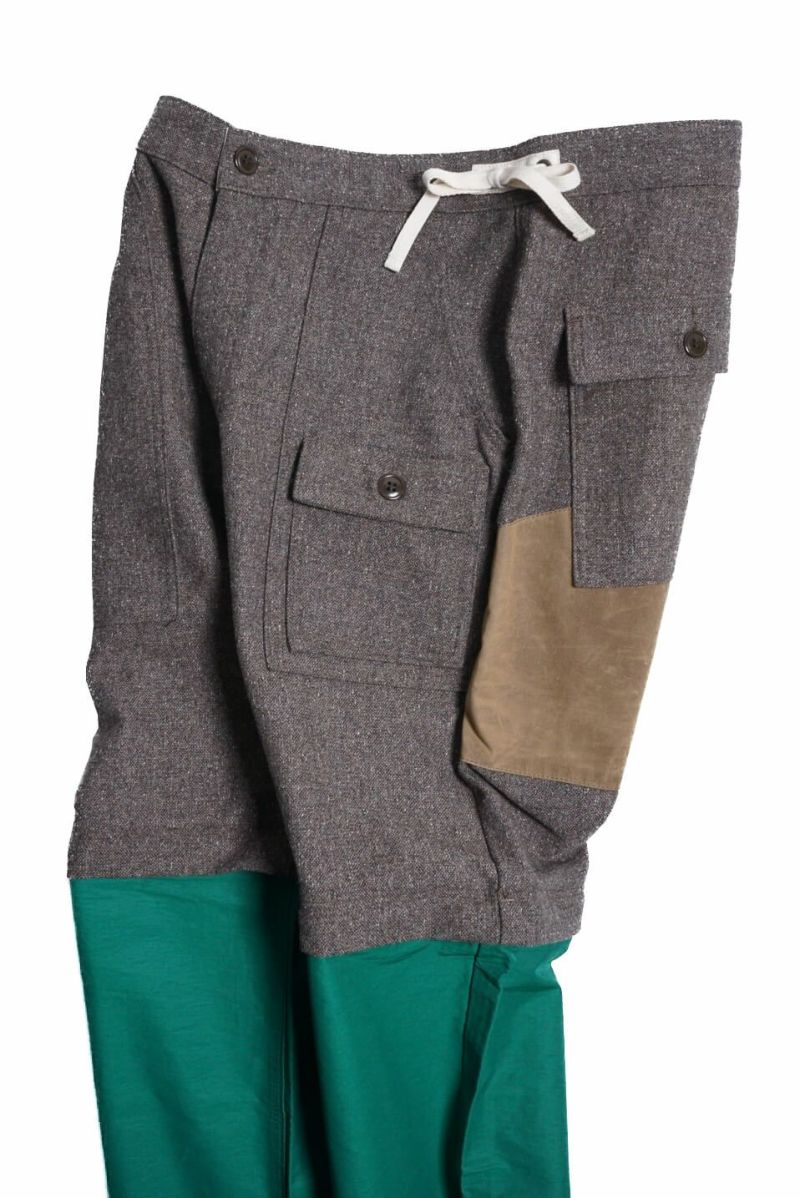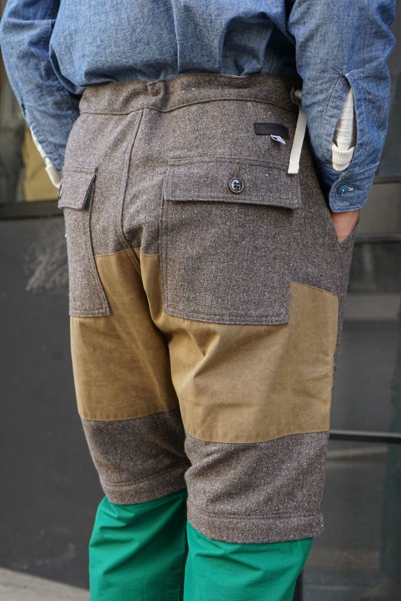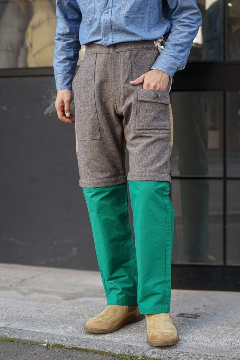 アイテム名にもあるように、フロントに5つ、バックに2つと、計7つものポケットを装備したパンツ。ウール素材とパラフィン加工が施された異素材のコンビネーションが、なんともヘヴィーデューティな雰囲気を醸し出します。膝下のコットン×ナイロン素材はジップで脱着可能なコンバーチブル仕様。