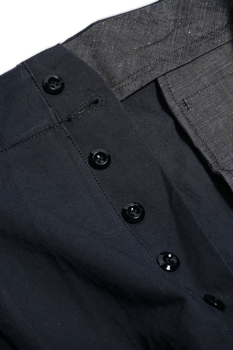 裏地、スレキにはコットンブラックシャンブレーを使用し、ボタンはフレンチヴィンテージでよく見られるラッカーボタンをオリジナルで製作するなど、細部までこだわり抜いた一本です。