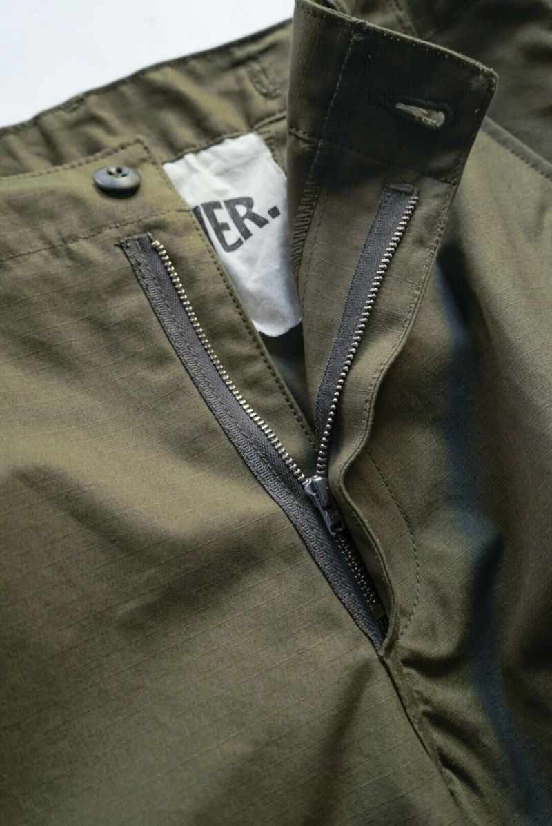 当時より少しだけ股上は深く設定されていますが、コットンリップストップ素材やシルエットなどは敢えて変えずに表現されたベーシックな一本です。