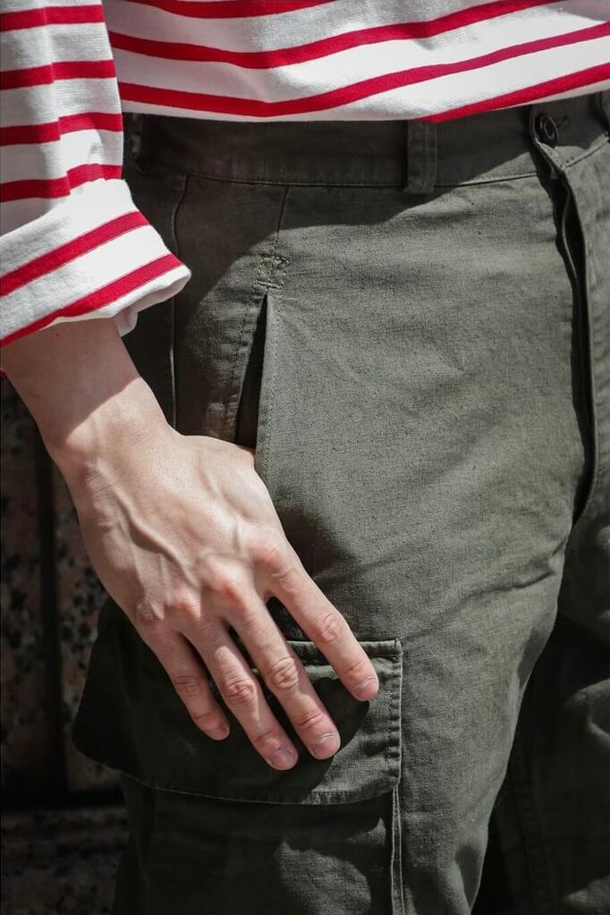 フランス軍の名作M47後期をベースに、OUTILの解釈で再構築した定番のPANTALON BLESLE(パンタロンブレル)。