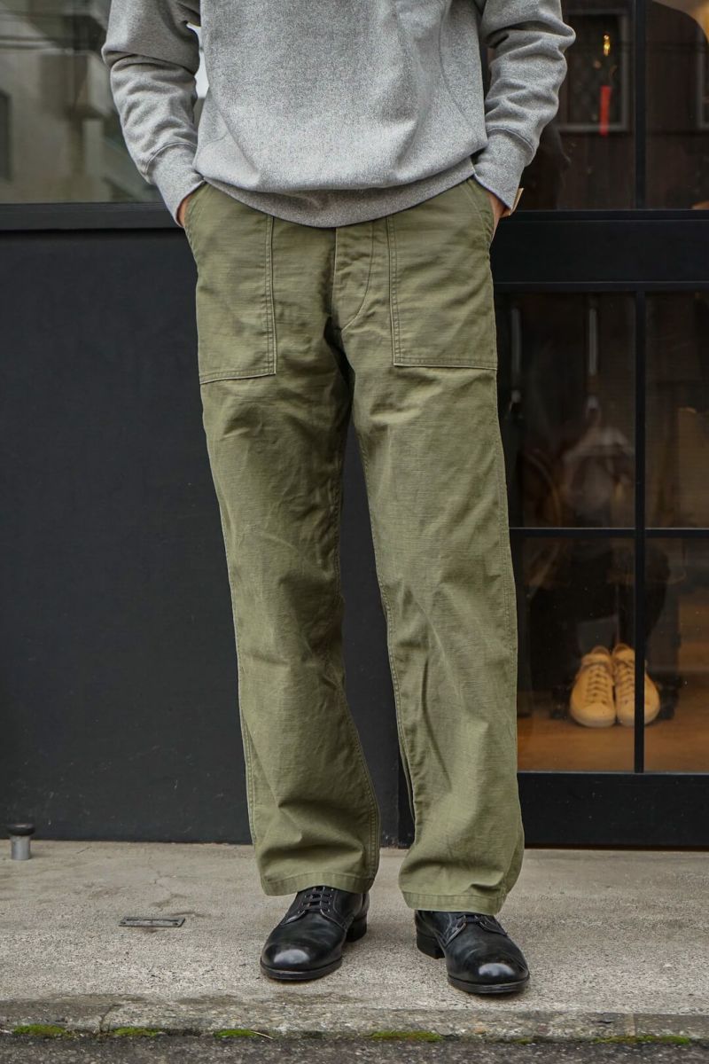 MSG & SONS定番として国内にて製作していた「ベイカーパンツ」を"MADE IN USA"にアップデートしリリースです。US ARMYの名品、通称ベイカーパンツ(ユーティリティーパンツ)の中でも、1950年代後半~60年代前半の物に着目、検証しました。当時のデッドストックをベースに"inch"(インチ)を用いたアメリカ基準でパターンメイキングすることで、当時のサイズスペックを忠実に再現。縫製はアメリカ軍への納入実績を持つ工場にて行なっています。