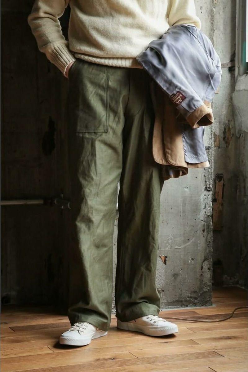 MSG & SONS定番として国内にて製作していた「ベイカーパンツ」を"MADE IN USA"にアップデートしリリースです。US ARMYの名品、通称ベイカーパンツ(ユーティリティーパンツ)の中でも、1950年代後半~60年代前半の物に着目、検証しました。当時のデッドストックをベースに"inch"(インチ)を用いたアメリカ基準でパターンメイキングすることで、当時のサイズスペックを忠実に再現。縫製はアメリカ軍への納入実績を持つ工場にて行なっています。