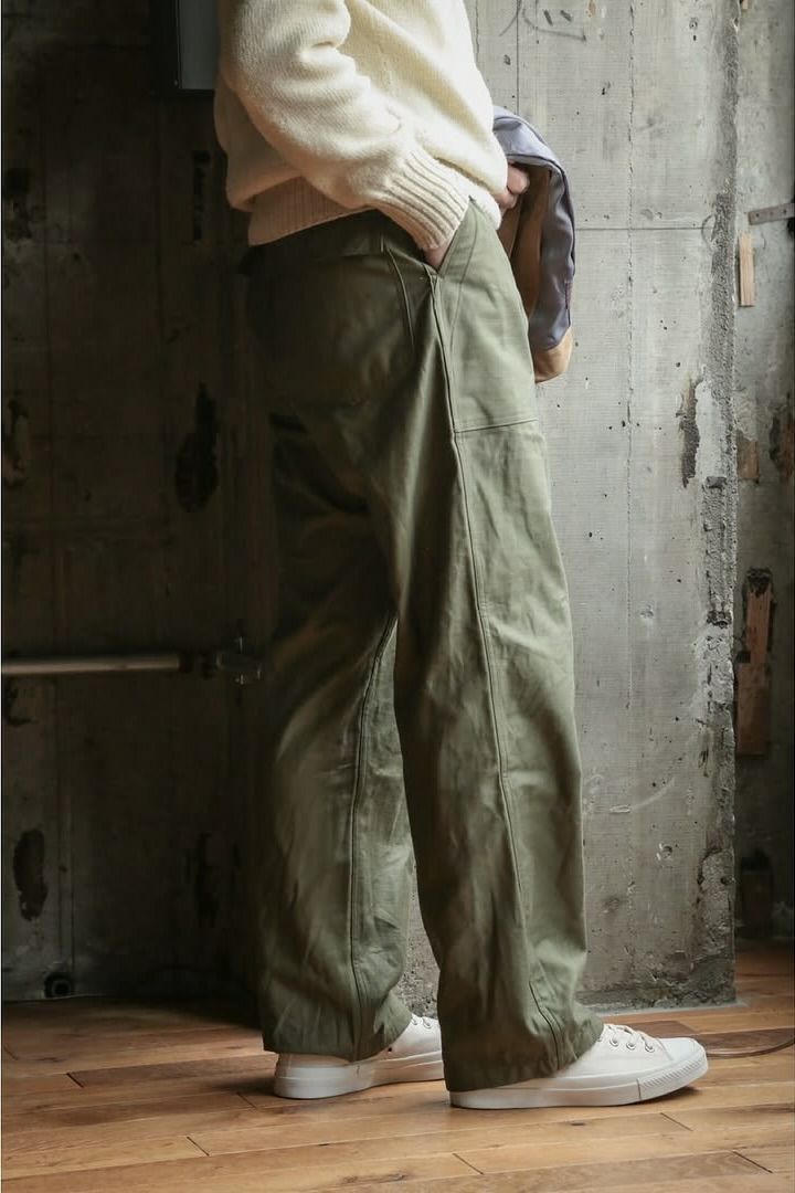 MSG & SONS定番として国内にて製作していた「ベイカーパンツ」を"MADE IN USA"にアップデートしリリースです。US ARMYの名品、通称ベイカーパンツ(ユーティリティーパンツ)の中でも、1950年代後半~60年代前半の物に着目、検証しました。当時のデッドストックをベースに"inch"(インチ)を用いたアメリカ基準でパターンメイキングすることで、当時のサイズスペックを忠実に再現。縫製はアメリカ軍への納入実績を持つ工場にて行なっています。