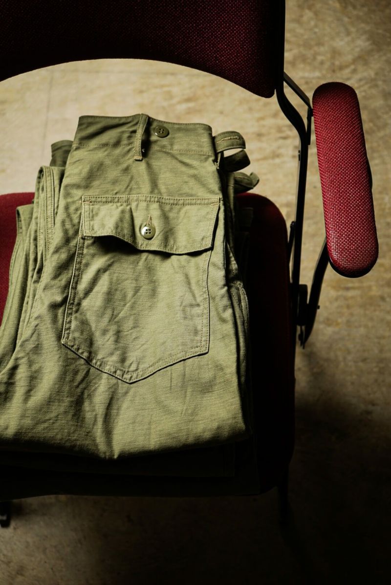 MSG & SONS定番として国内にて製作していた「ベイカーパンツ」を"MADE IN USA"にアップデートしリリースです。US ARMYの名品、通称ベイカーパンツ(ユーティリティーパンツ)の中でも、1950年代後半~60年代前半の物に着目、検証しました。当時のデッドストックをベースに"inch"(インチ)を用いたアメリカ基準でパターンメイキングすることで、当時のサイズスペックを忠実に再現。縫製はアメリカ軍への納入実績を持つ工場にて行なっています。