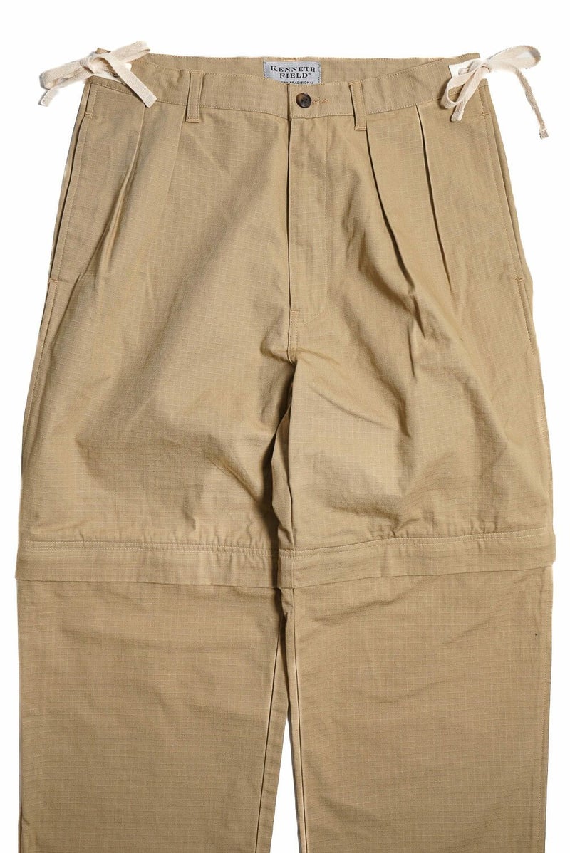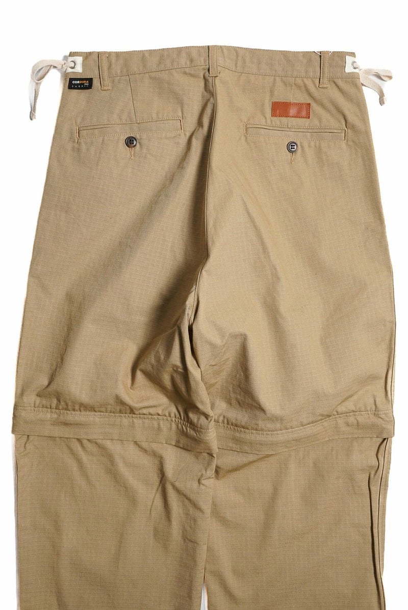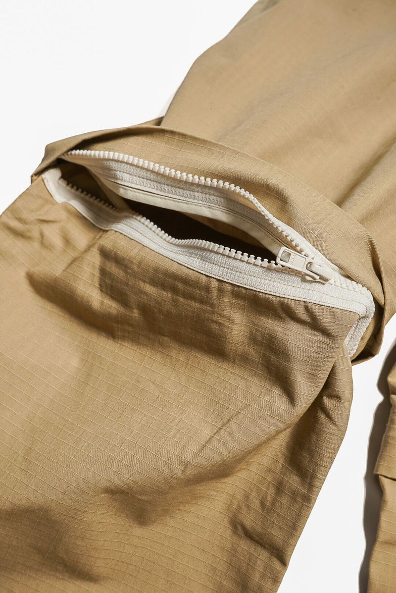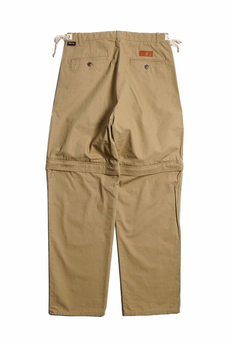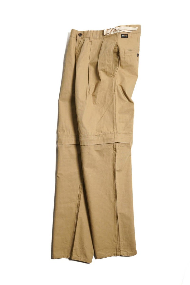 膝下から下をジップで着脱することでショートパンツとしても穿ける2WAYコンバーチブルパンツ。素材にはコーデュラナイロンを使用したコットン×ナイロンのリップストップ生地を採用しています。アウトドアからタウンユースまで幅広いコーディネートで活躍するボトムスです。