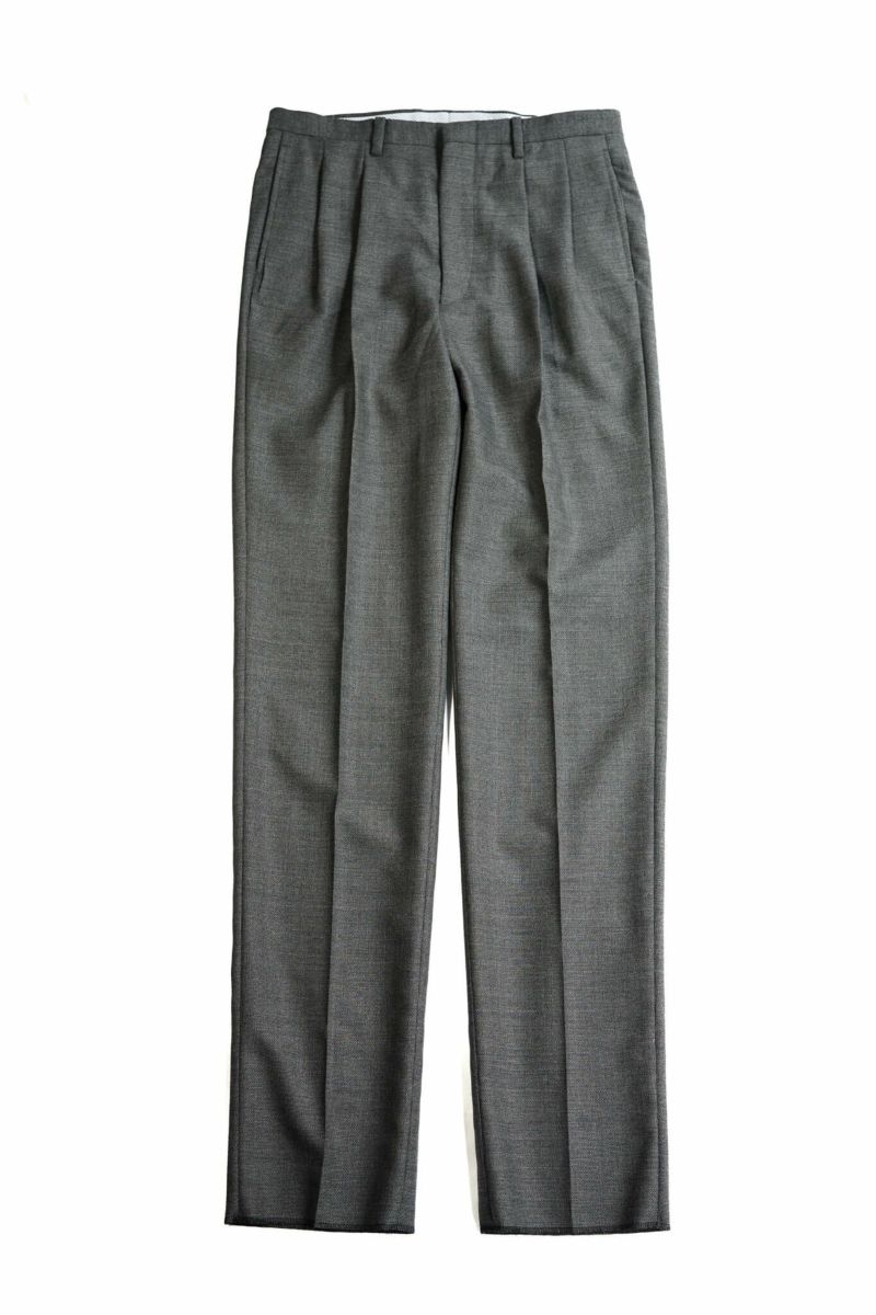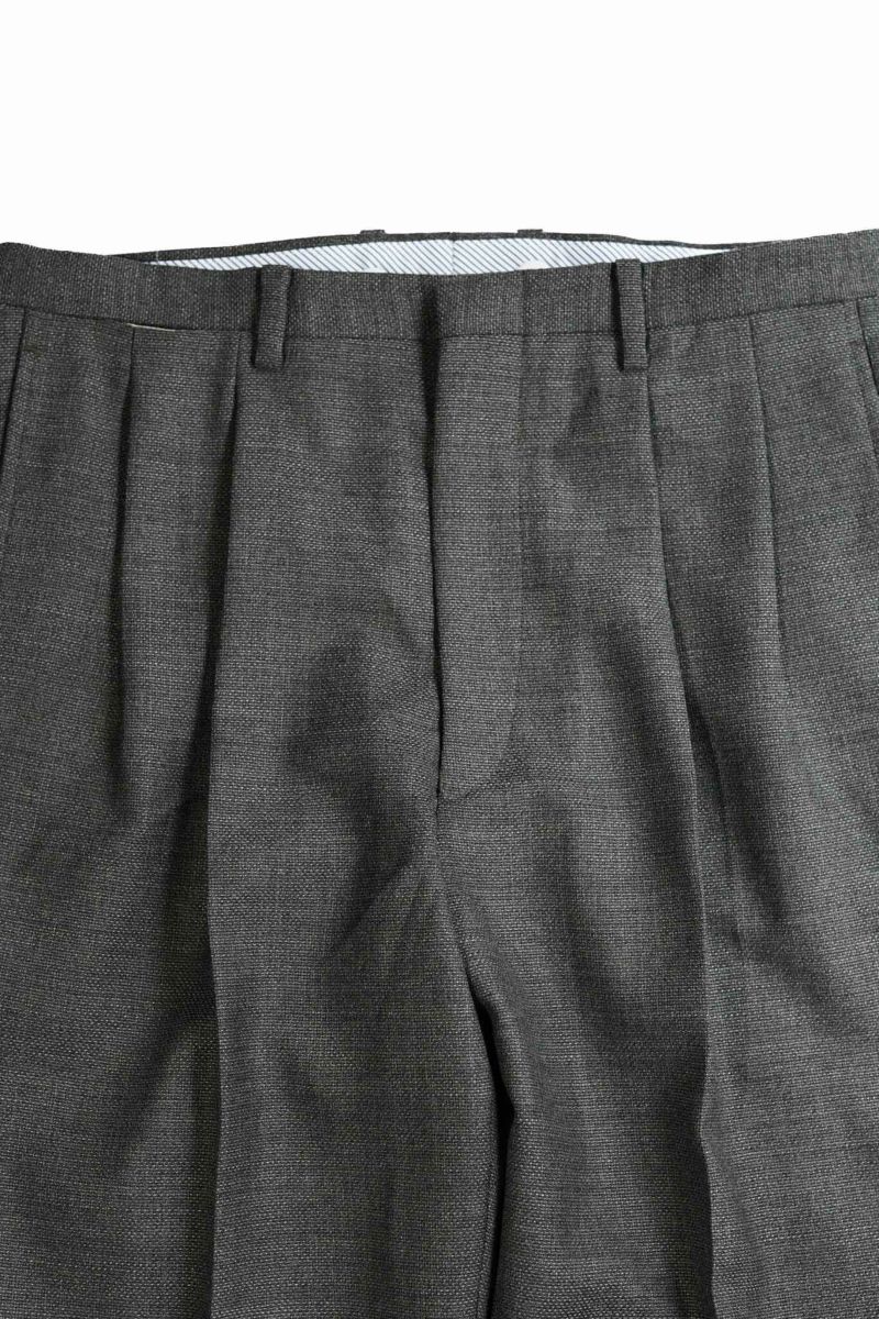 腰回りに2プリーツを入れ、ゆとりを持たせ、裾に向けた綺麗なテーパードラインが特徴のシルエット。VITALE BARBERIS CANONICOは1936年創業の老舗ミル。バスケット織の生地を使用する事で、表面に光沢が少なくしなやかな生地が特徴です。