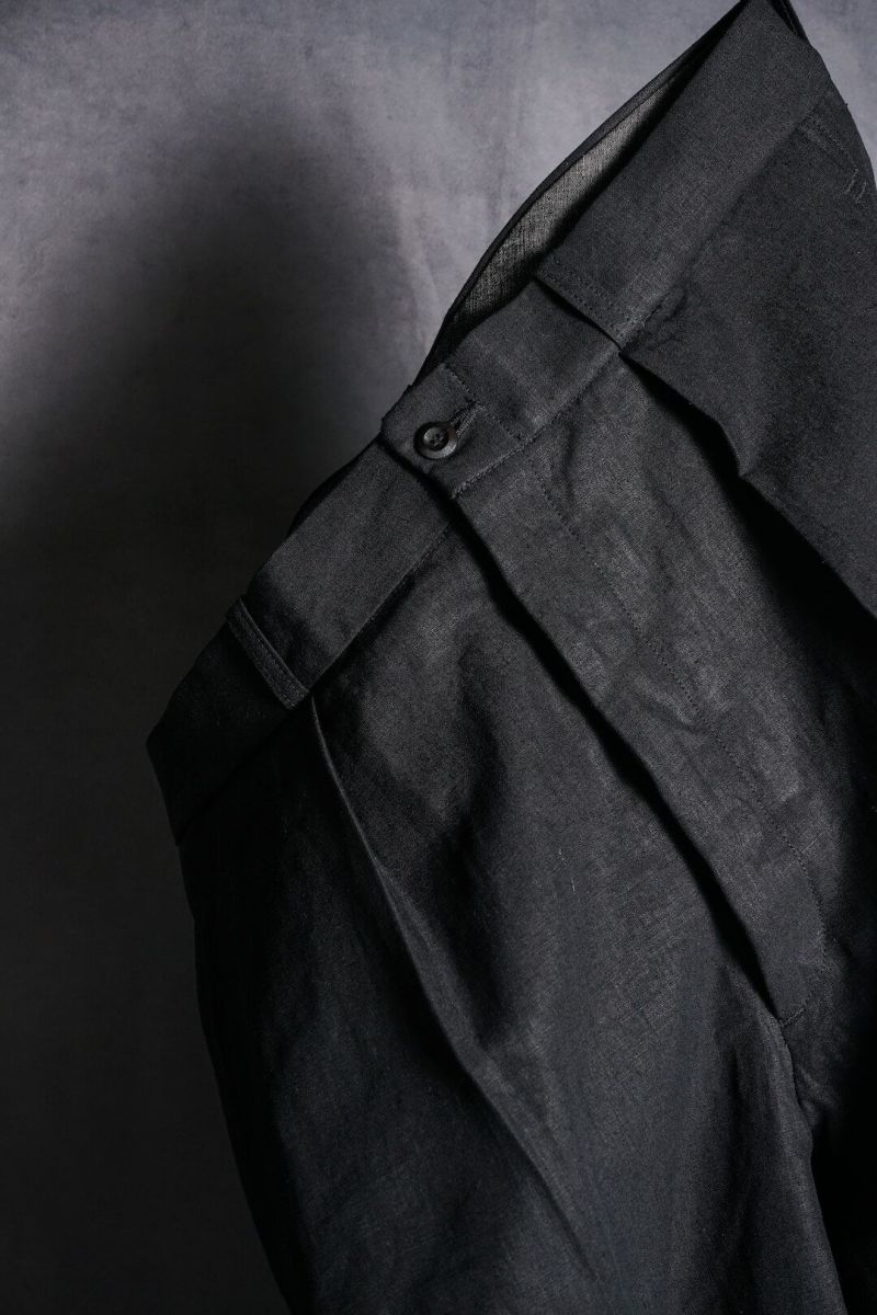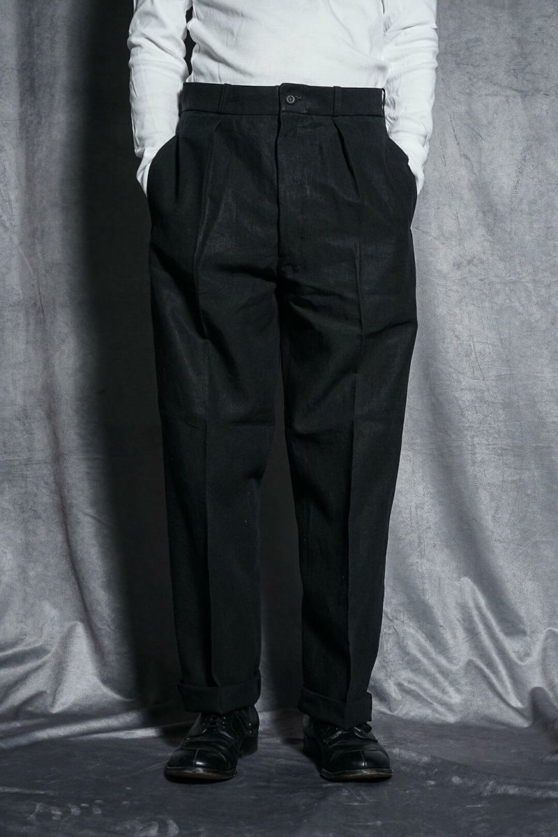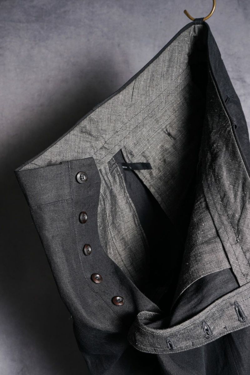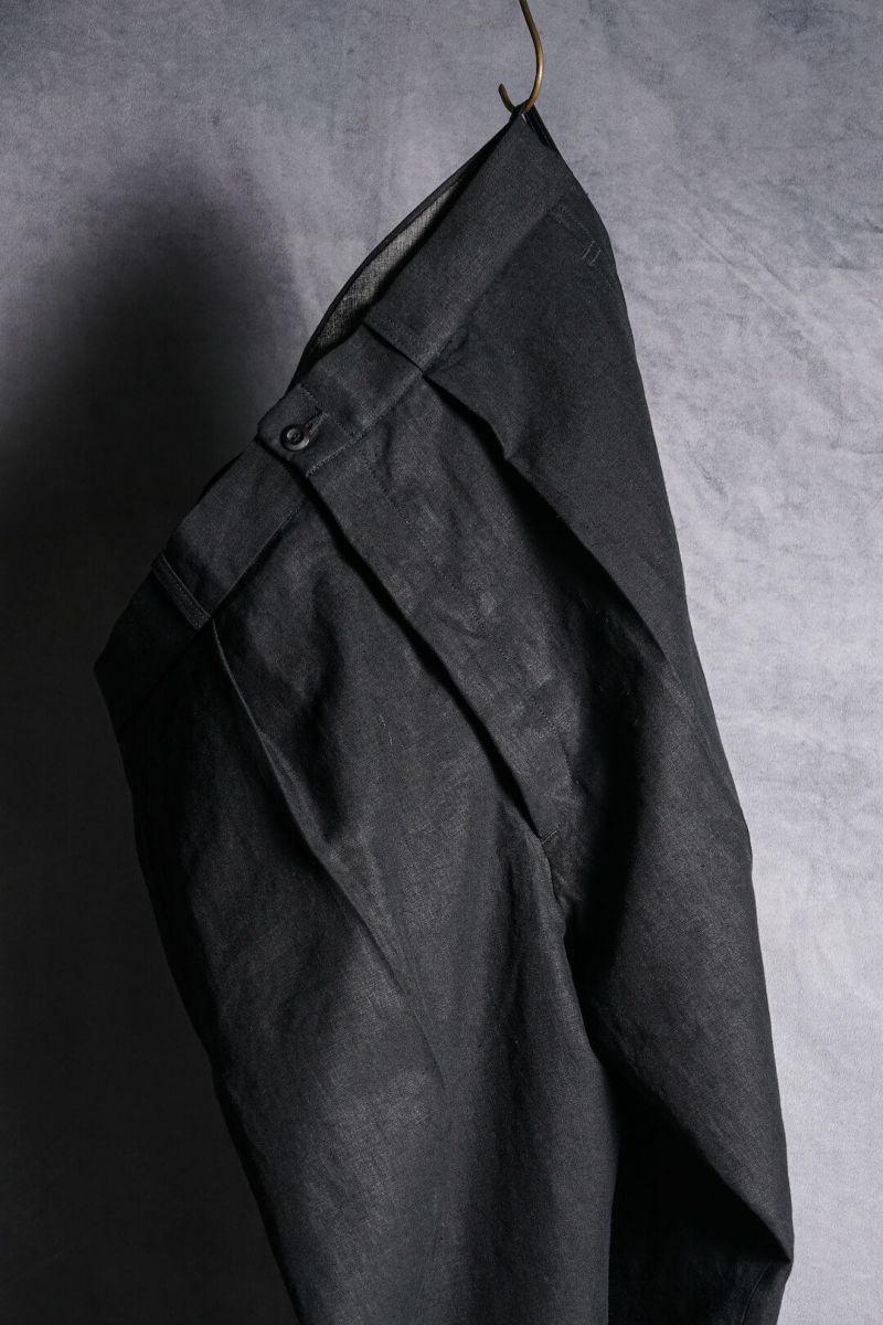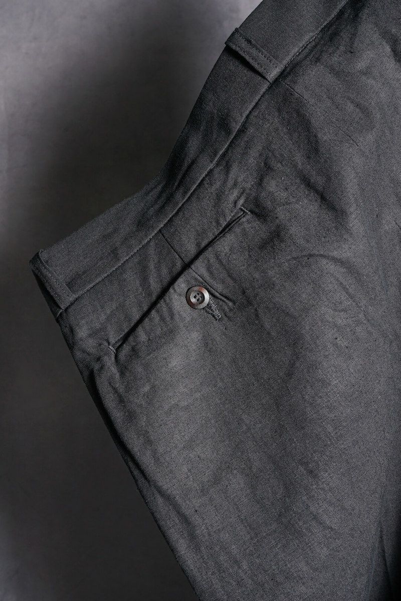 1915年にフランス軍へ支給されていたミリタリートラウザーズのフィット感、ディテールを参考に製作したトラウザーズ。ゆとりのあるフィット感でありながら、ハリ感のある生地と相まって綺麗なシルエットを描く一本です。