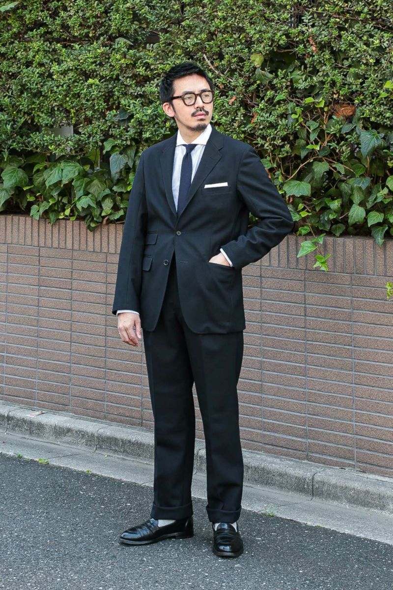 フロントに2タック入れた、やや直線的なシルエットのトラウザーは腰回りにゆとりがあり、裾に向けてテーパードになっています。