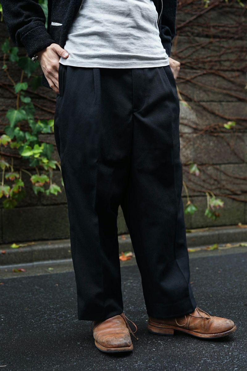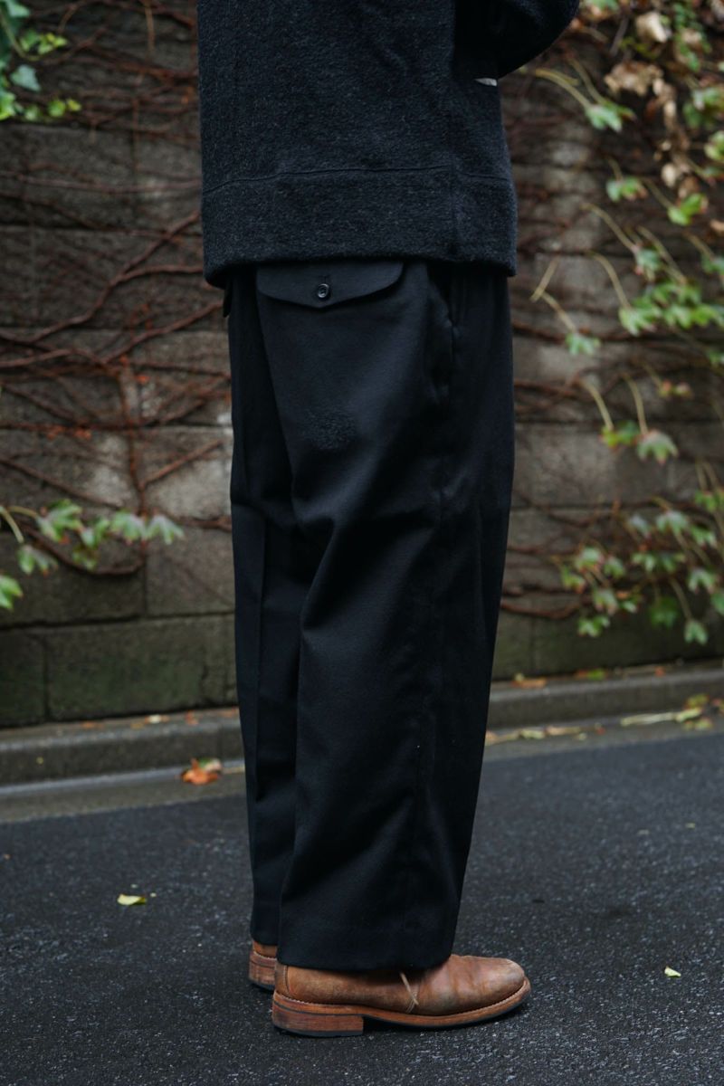 rdv o globeからINES PA.をリリース。素材にはウール・コットンを使用した先染め交織ツイルに、裏起毛仕上げを施しています。そうすることでウォーム感と経年変化を楽しむことができます。デザインはシンプルな1タックのストレートなシルエット。バックスタイルはフラップ付きポケット、ウエストにはコインポケットも施されているのが特徴です。