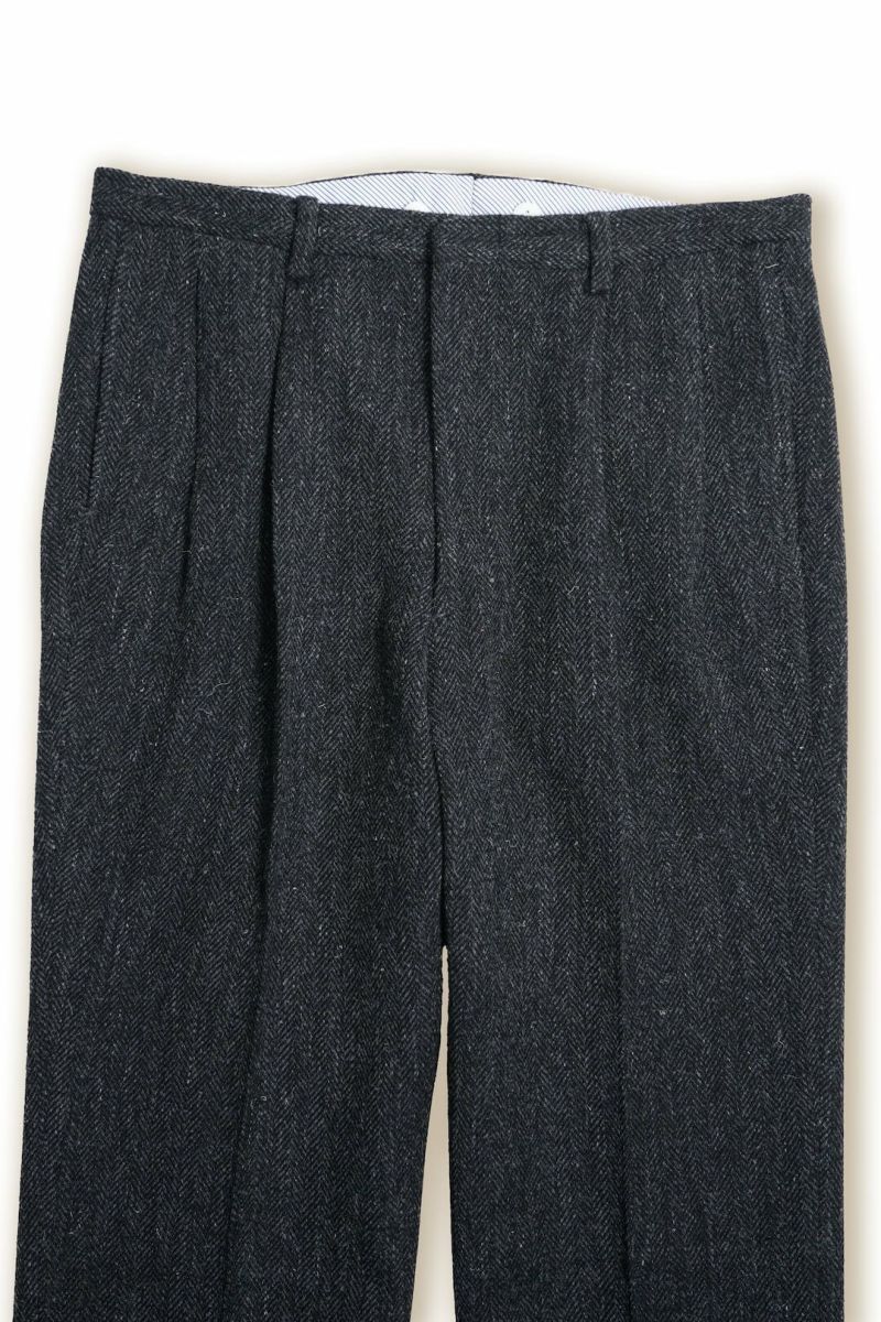 KENNETH FIELD が毎冬提案している生地である英・FOX 社のヘリンボーンツイードを仕様した2プリーツトラウザーズ。