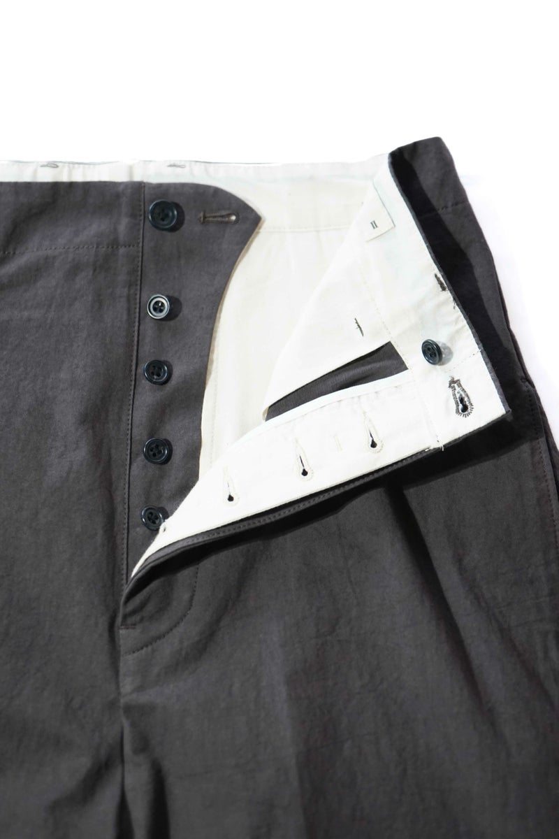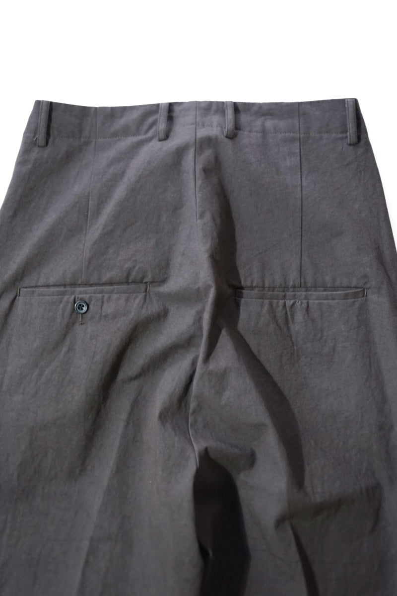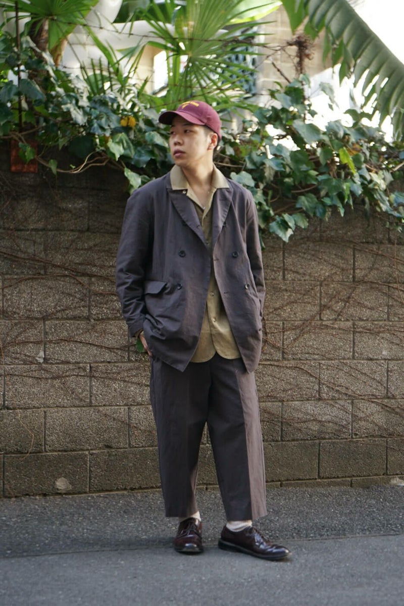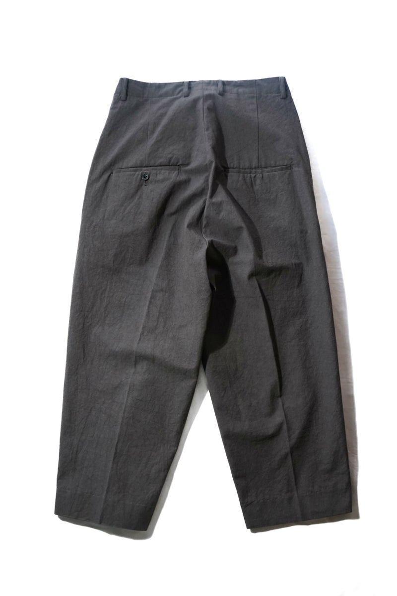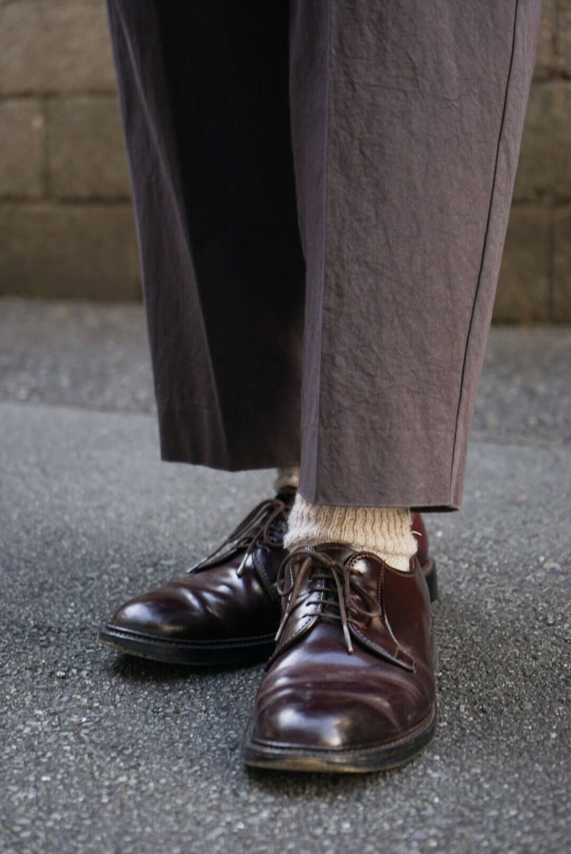 rdv o globeからBRUCE PA.をリリース。素材には,コットンのドビークロスに後染めを施しております天日干しにより自然なシワ感となりドライな手触りが特徴です。 トラッドな印象ながらもロークロッチのデザインに加えヒップ周りにゆとりを持たせ動きやすくしています。太めのシルエットが特徴のトラウザーは、裾口にかけて緩やかにテーパードを利かせています。レングスは9分丈くらいに設定しており様々なシューズとも相性の良いデザインとなっておりますのでぜひお試しください。