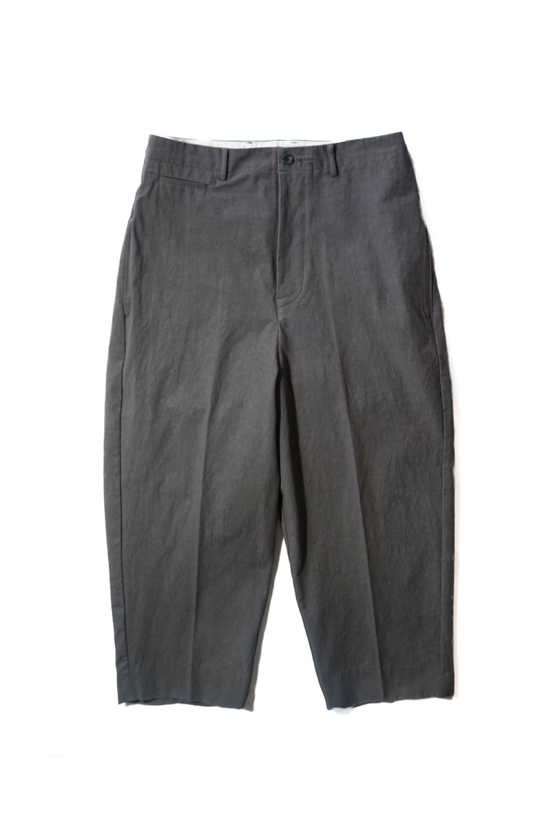 rdv o globeからBRUCE PA.をリリース。素材には,コットンのドビークロスに後染めを施しております天日干しにより自然なシワ感となりドライな手触りが特徴です。 トラッドな印象ながらもロークロッチのデザインに加えヒップ周りにゆとりを持たせ動きやすくしています。太めのシルエットが特徴のトラウザーは、裾口にかけて緩やかにテーパードを利かせています。レングスは9分丈くらいに設定しており様々なシューズとも相性の良いデザインとなっておりますのでぜひお試しください。