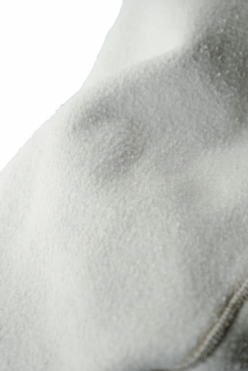貴重な旧式の吊り編み機を使用し特殊な手間をかけ作られた生地は、非効率であるがゆえに他には無い風合いがあります。豊潤なウールのようなタッチと、もちっとした弾力のある肌触りに仕上がっています。奥行きのある独特のメランジ感と極上の肌触りを両立させた、ボンクラ渾身の一着です。