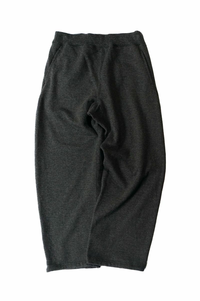ヴィンテージのトラックパンツをイメージした、股下にマチが入ったデザイン。フラットでイージーなパターンのヴィンテージのパンツとは違い、しっかりした生地の肉感を考慮し、体の動き分量を考えた前後差のあるパターンで制作させています。大きめのサイズ感のため、普段よりワンサイズダウンがおすすめです。