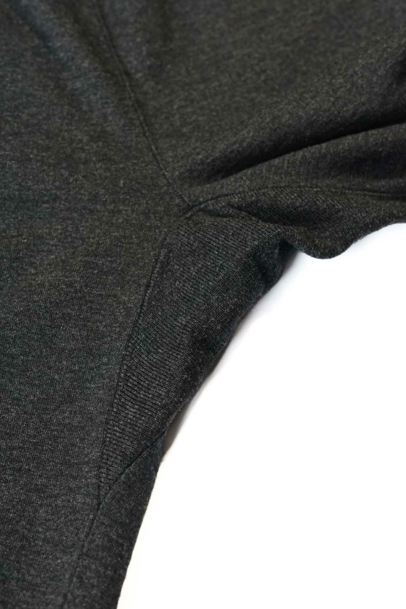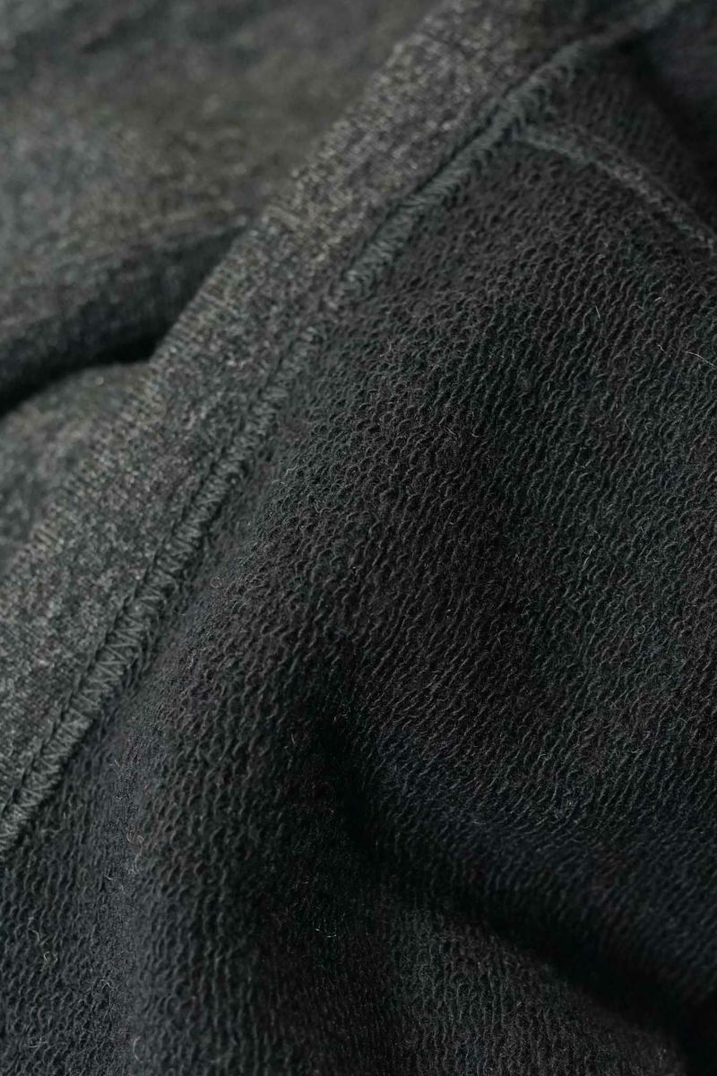 素材は23AWから継続しているSlopeslowオリジナルのウール100%裏毛。裏面ともに編み機に入る限界の太番手紡毛ウールを使用しているので、しっかりと目が詰まっています。そのため風も通さず、ちょっとした雨や雪ならはじいてくれます。表と裏を繋ぐ中糸は梳毛ウールを使用。