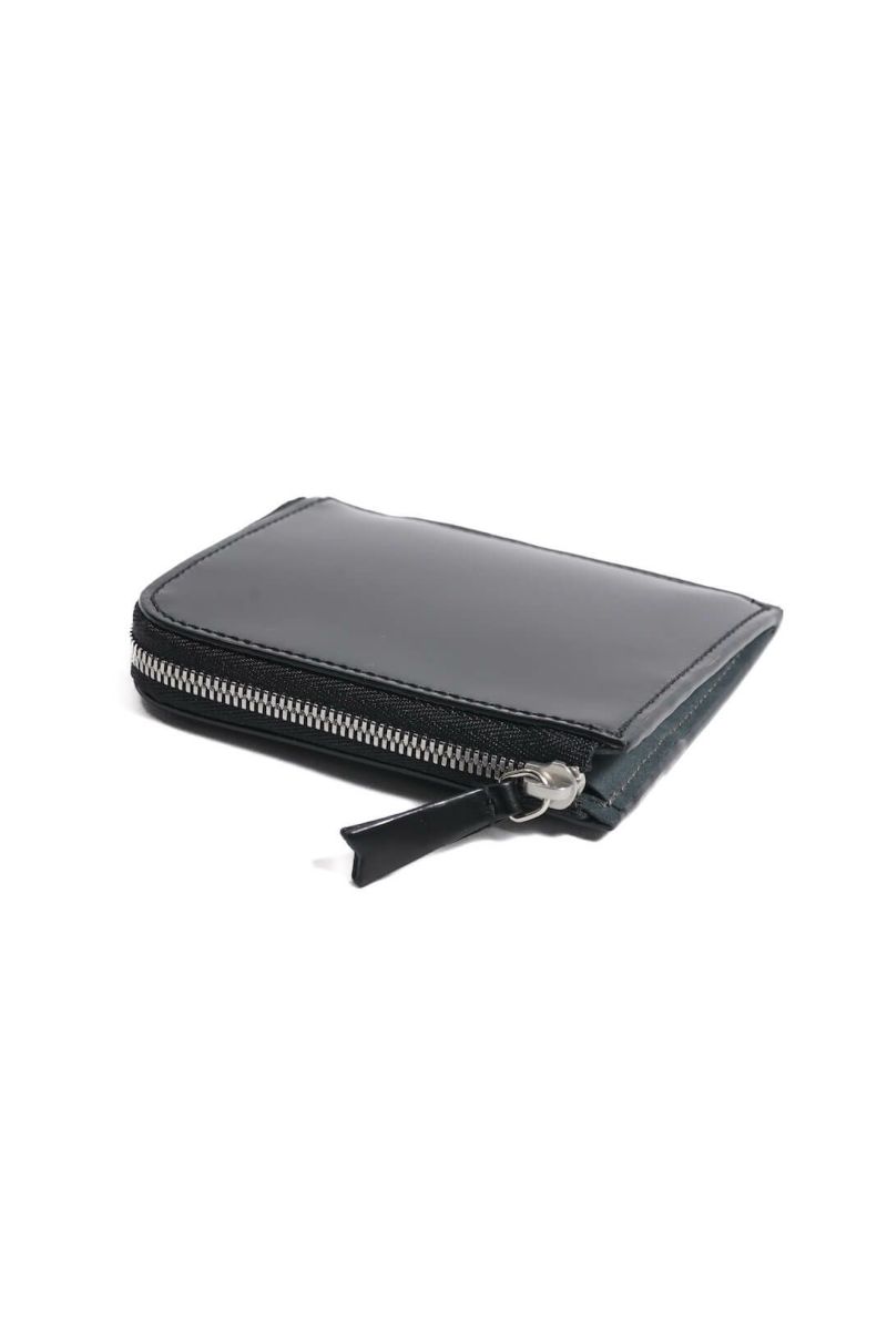 ベーシックなデザインのL字ファスナー財布です。開きが良くなるように片方にはマチが付けられており、開けた左右にはカード段が6箇所、中央は小銭入れ。お札は二つ折りで入れられます。背面にはICカードなどが入るポケットを付けています。