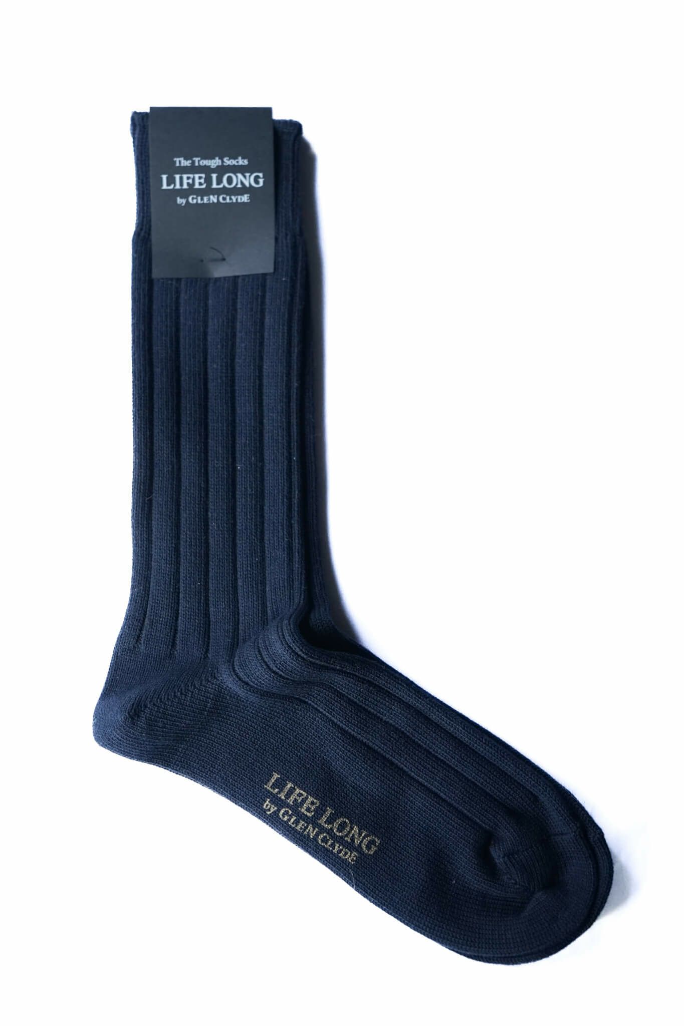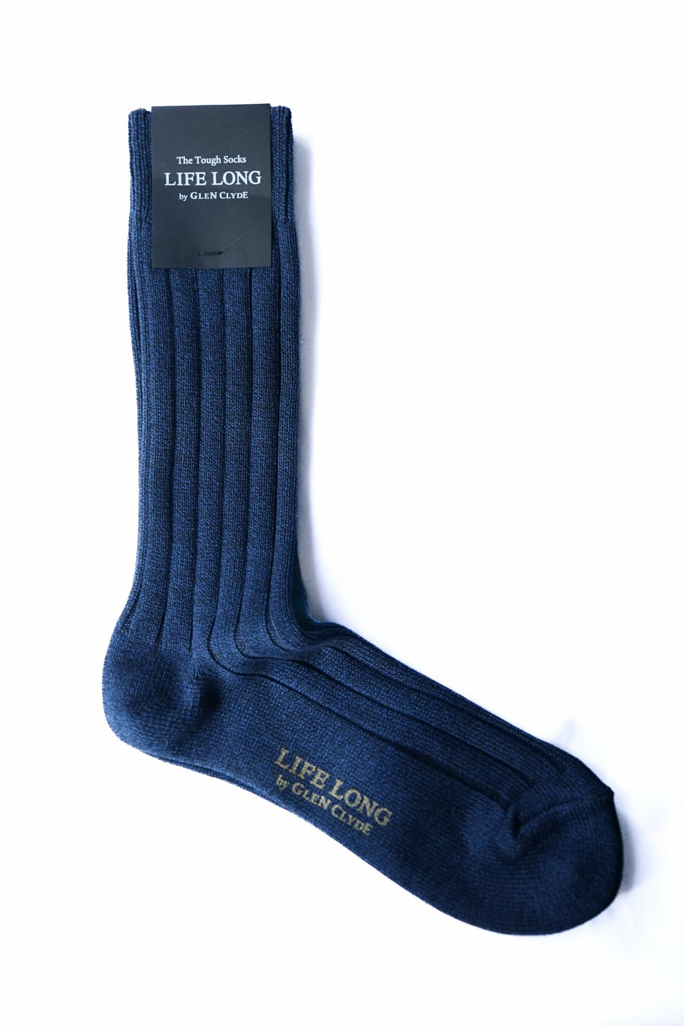 一年中あらゆるシーンで活躍する中厚ソックス。色によってレザーシューズ、ワークブーツ、スニーカーなど多くの使い方を楽しんでいただけます。シンプルなリブですが、編み方や素材の使い方を研究し、足をしっかり包み込み絶妙な弾力感を作り上げています。