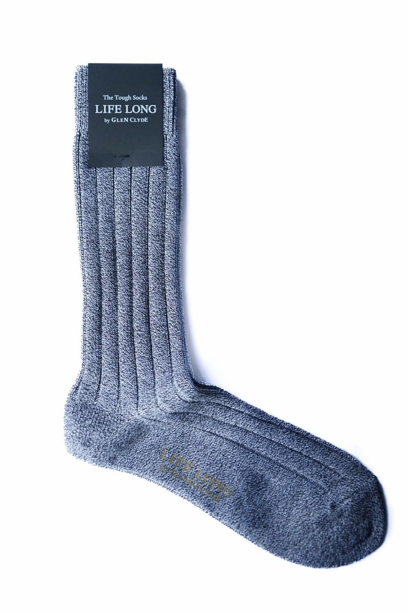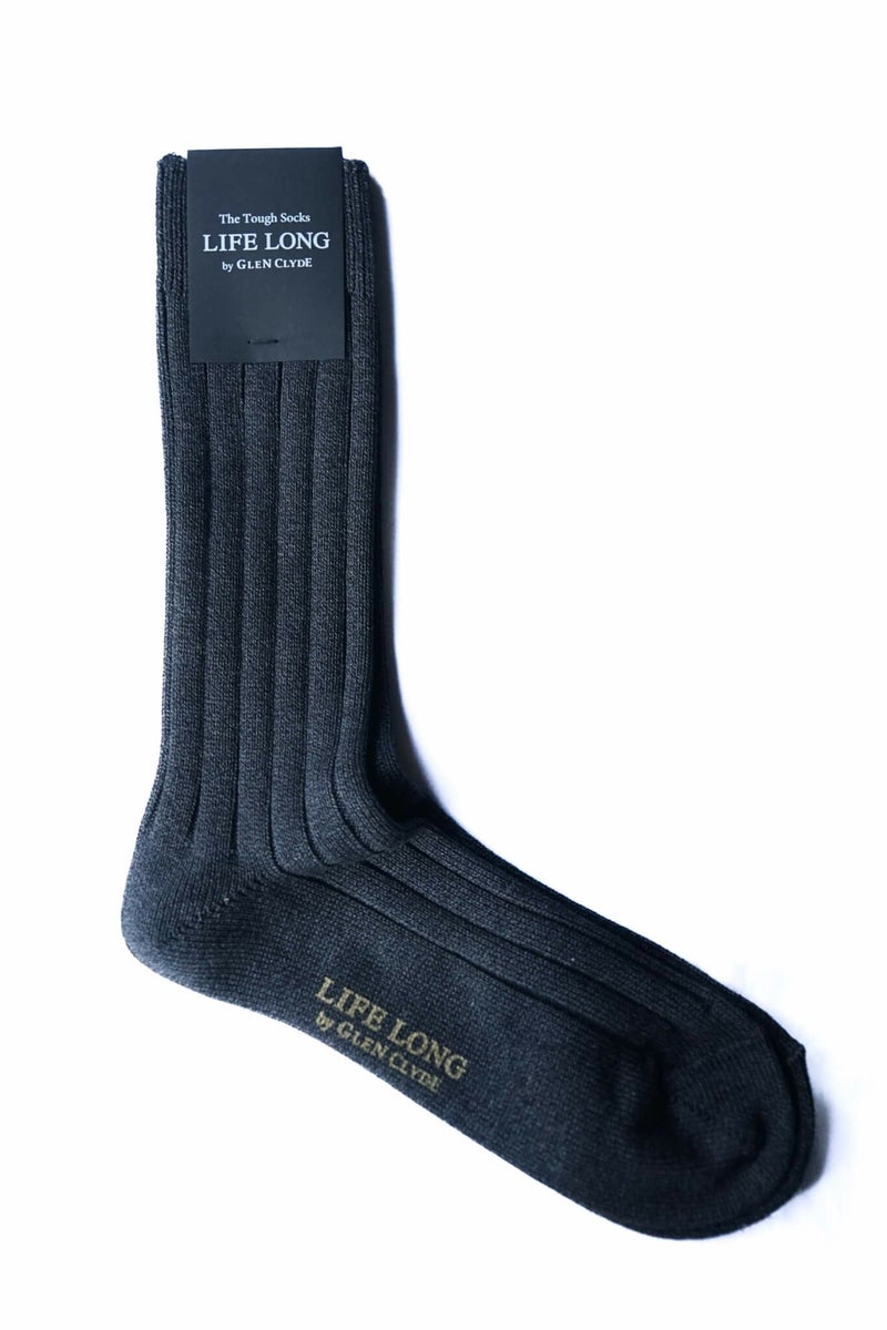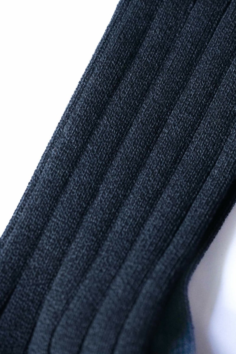 一年中あらゆるシーンで活躍する中厚ソックス。色によってレザーシューズ、ワークブーツ、スニーカーなど多くの使い方を楽しんでいただけます。シンプルなリブですが、編み方や素材の使い方を研究し、足をしっかり包み込み絶妙な弾力感を作り上げています。