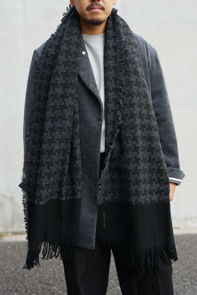 forme d'expressionのスカーフ。色柄の良さはもちろんのこと、様々な巻き方ができるサイズも魅力。ウールカシミヤの生地は保温性と肌触りも抜群です。