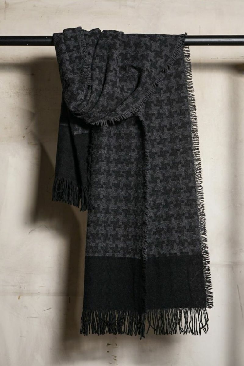 forme d'expressionのスカーフ。色柄の良さはもちろんのこと、様々な巻き方ができるサイズも魅力。ウールカシミヤの生地は保温性と肌触りも抜群です。