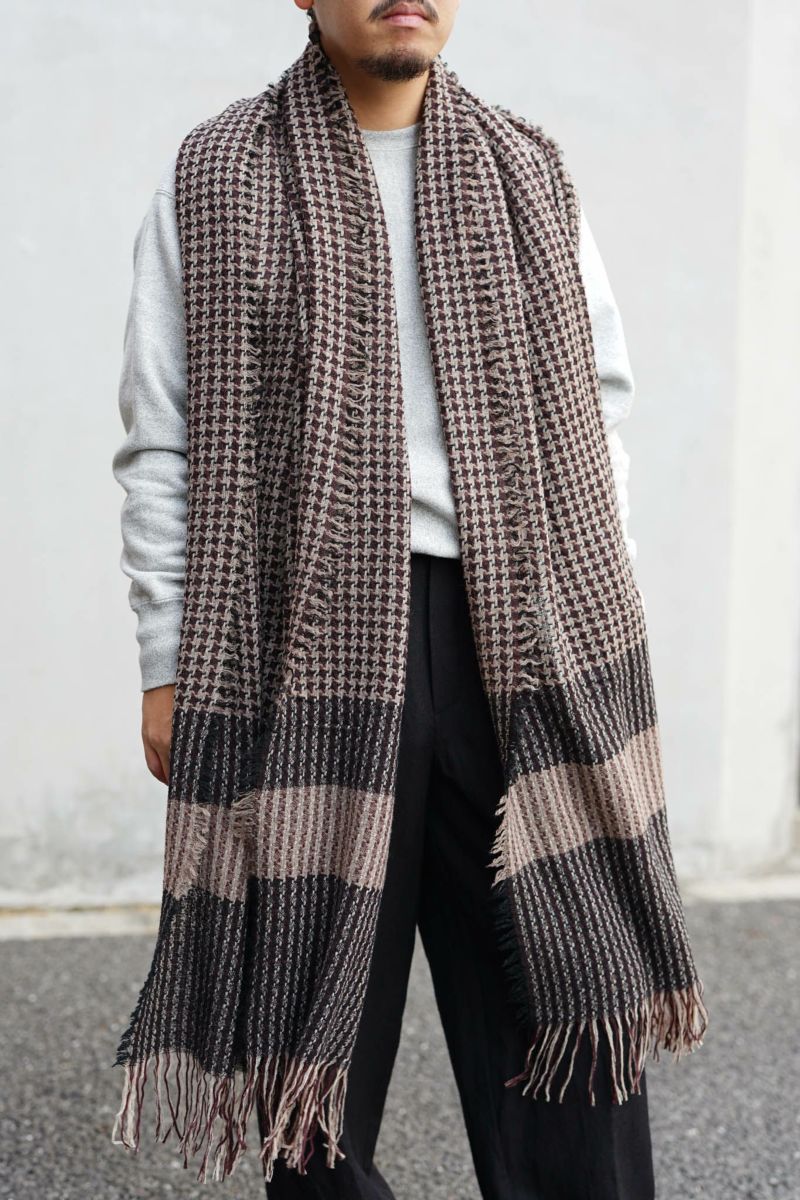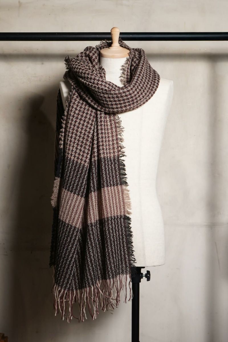 forme d'expressionのスカーフ。色柄の良さはもちろんのこと、様々な巻き方ができるサイズも魅力。ウールの生地は保温性も抜群です。