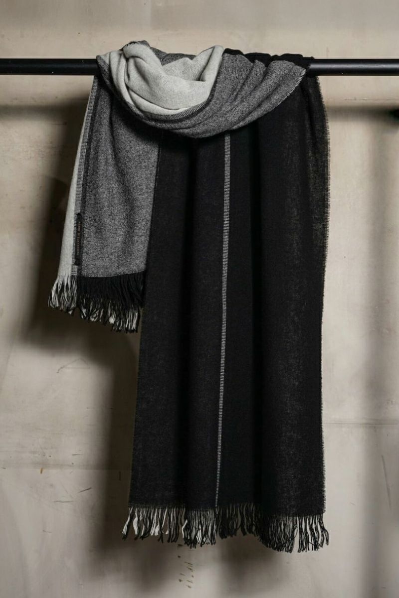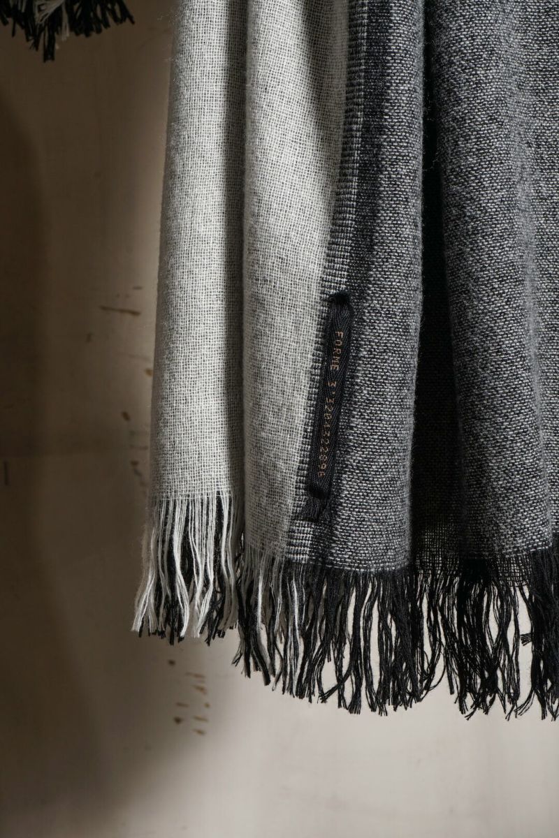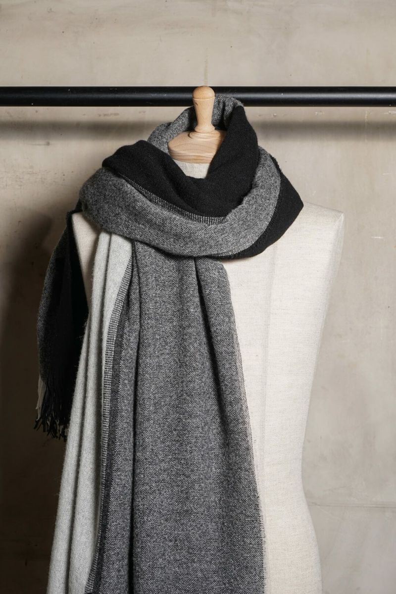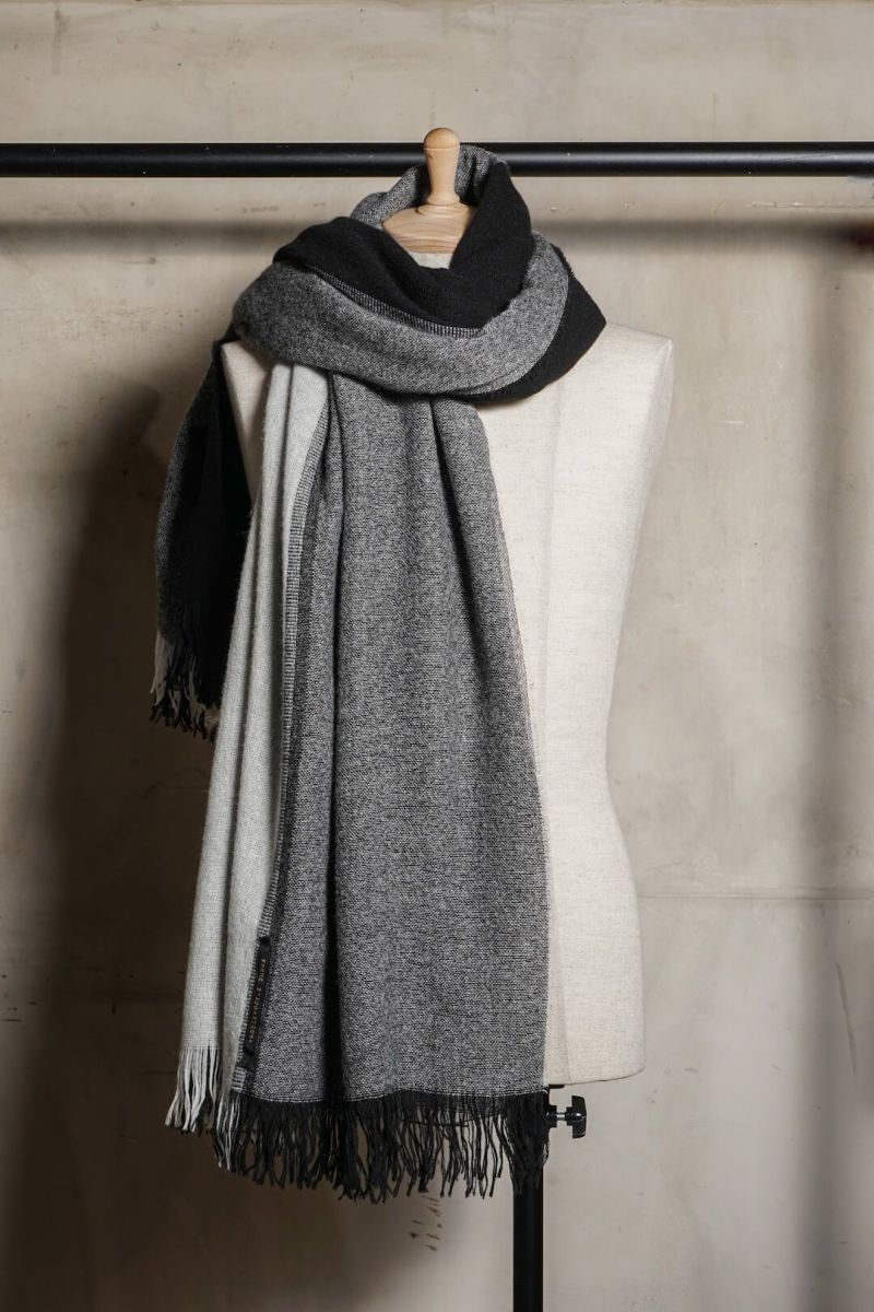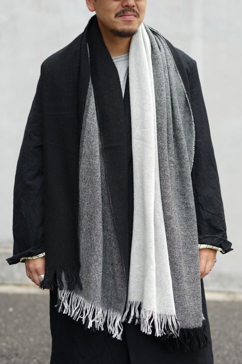 forme d'expressionのスカーフ。色柄の良さはもちろんのこと、様々な巻き方ができるサイズも魅力。ウールのダブルフェイス生地は保温性も抜群です。