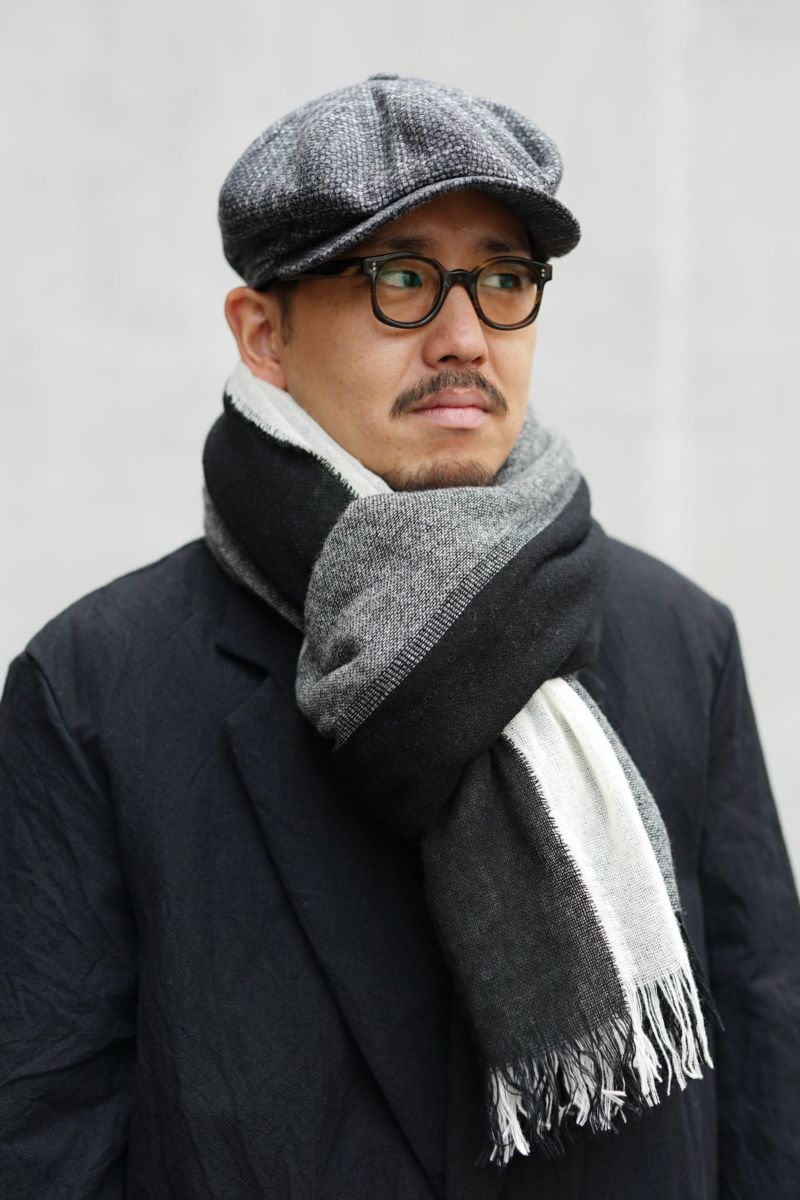 forme d'expressionのスカーフ。色柄の良さはもちろんのこと、様々な巻き方ができるサイズも魅力。ウールのダブルフェイス生地は保温性も抜群です。