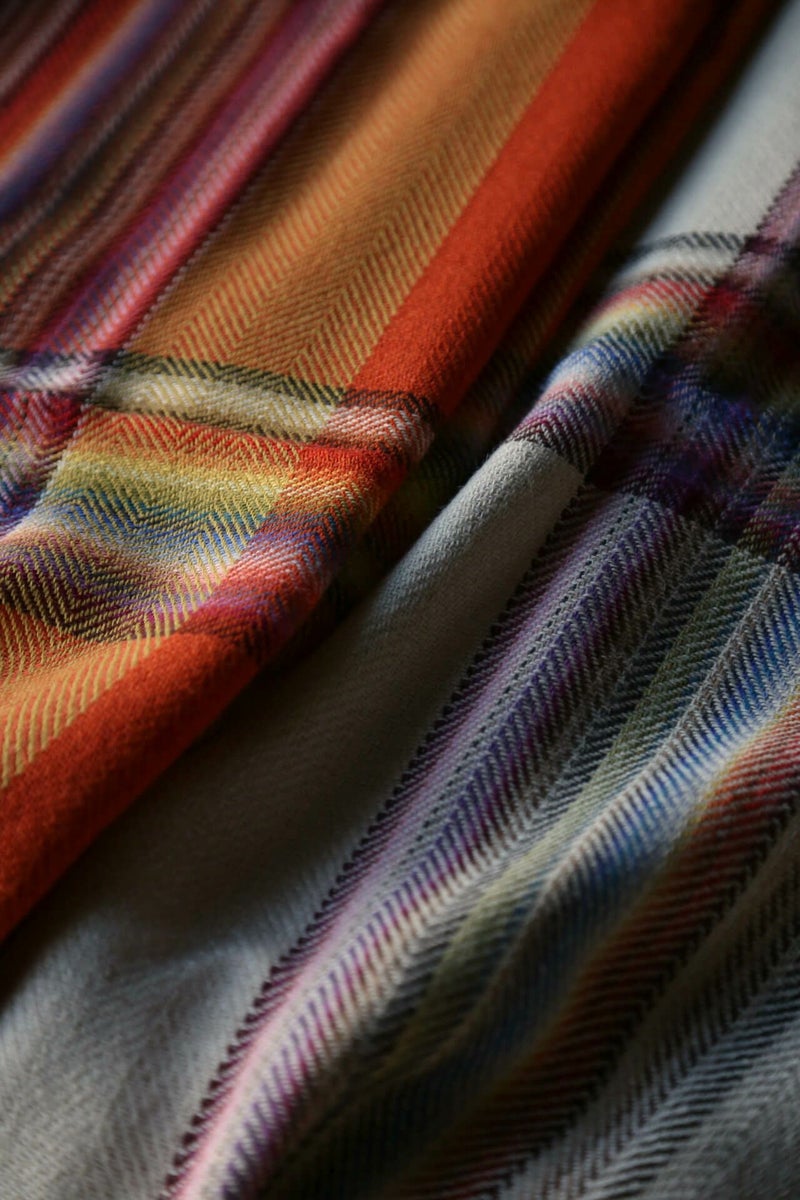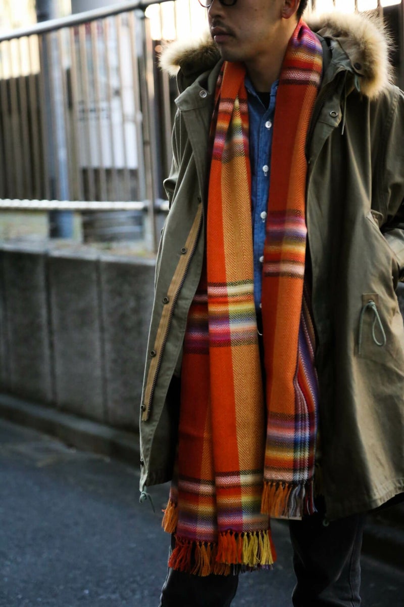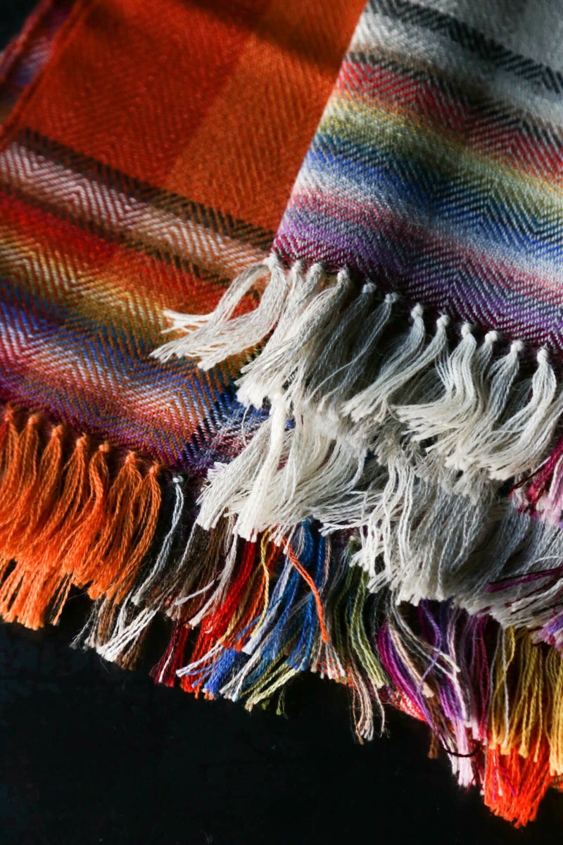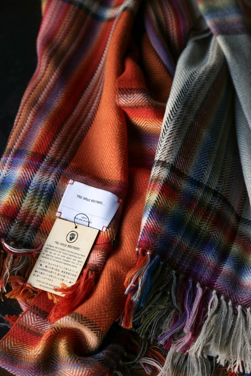 THE INOUE BROTHERS(ザ イノウエブラザーズ)のアルパカウールを使用したマルチカラースカーフ(マフラー)。現存する機械では実現不可能である24色の糸を用いた手織でしかできないカラーコンビネーションである。