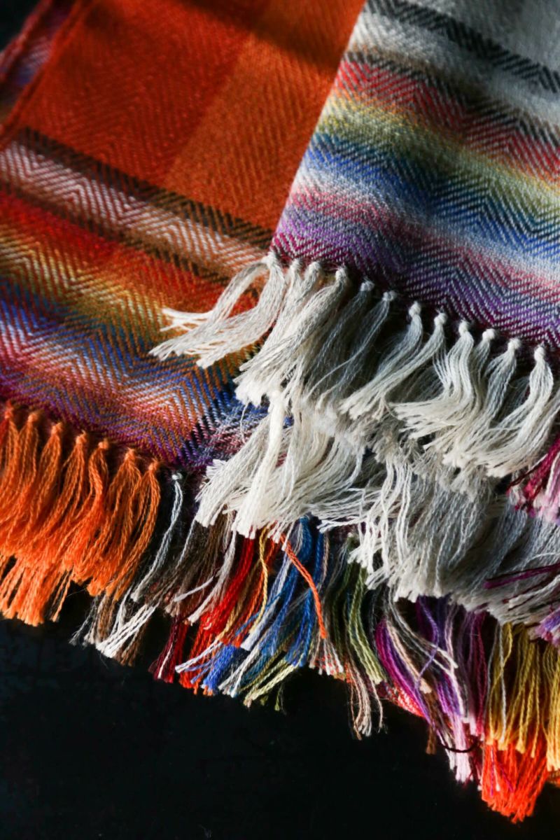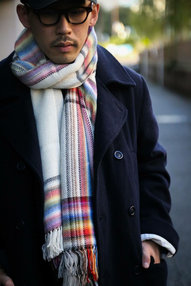 THE INOUE BROTHERS(ザ イノウエブラザーズ)のアルパカウールを使用したマルチカラースカーフ。ボリビア生産の手織りストール。 現存する機械では実現不可能である24色の糸を用いた手織でしかできないカラーコンビネーションである。 スーパーファインアルパカはアルパカのスタンダードの品質で最も頑丈なクオリティーである。 毛玉も立ちづらく使用していくとどんどん柔らかくなっていく。 自然の環境で育ったアルパカは厳しい環境を生きる為、その毛には多くの機能を備えている。 セルクレンジングの機能を持ち、空気に触れる事で体臭を軽減する機能を備えている。 また外部の激しい温度変化に対応する為、中空構造の毛は温度調整の機能を持っている。 その毛質は羊毛や他の獣毛と比べて毛玉の原因となるスケール(毛の表皮)が細く少ない為、毛玉になりにくいメリットがある。 鮮やかな色使いがコーディネートに彩りを加えてくれる魅力的なアイテムです。 100% Alpaca THE INOUE BROTHERS / Large Multi Coloured Scarf Price ¥37,400(税込)