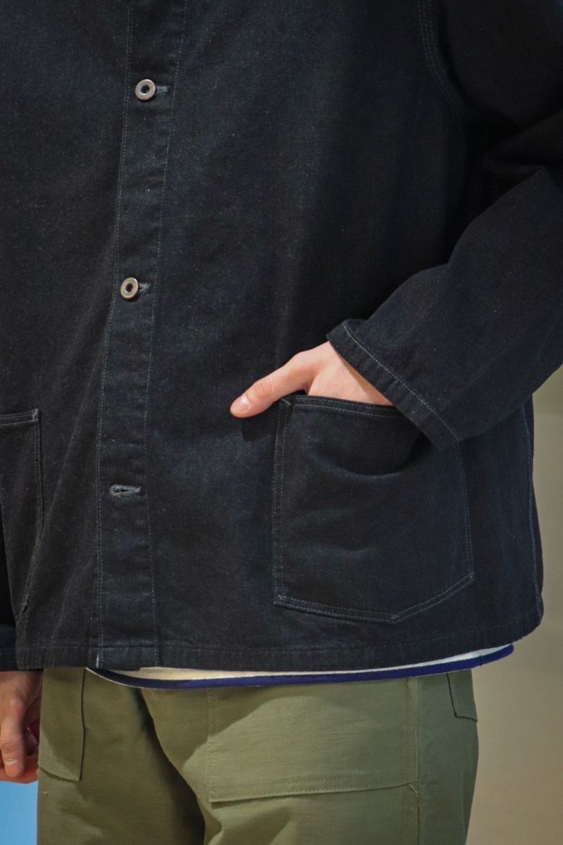 着丈が短めなシンプルなカバーオール。(40'Sのカバーオールがデザインソースとなりブランドを代表する品番です)身巾にはゆとりがあり、着丈が短いので一般的なデニムカバーオールとは少し違ったシルエットが魅力です。同生地のパンツと合わせて着るとユニフォーム感もでて◎