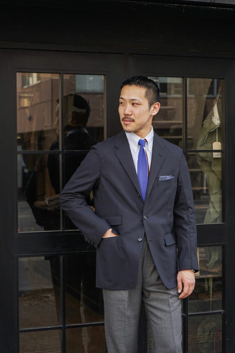 こちらは肩パッドを使用せず、裏地も極力使用していないアンコン仕立てのモデルですので、夏でもリラックスして着用することできます。