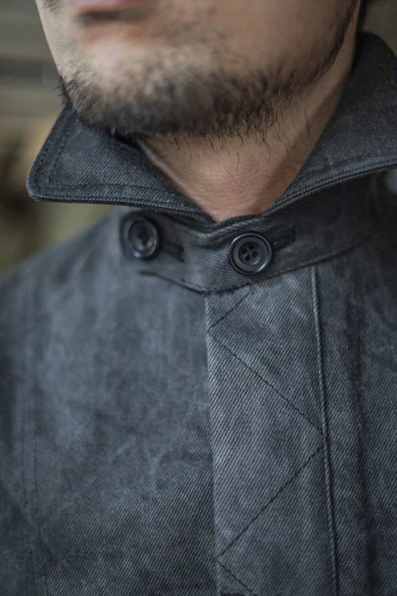 ヴィクトリアンスタイルにミリタリー、ワークといったディテールを加え、いまの時代に合ったシルエットをつくり上げ、素材、縫製から全てジャパンメイドに仕上げている。