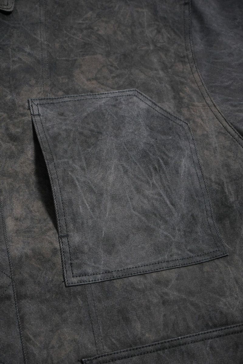 ドロップショルダー、ルーズシルエットのカバーオール。素材にはムラ感のある顔料染めを施したコットンツイルを使用しており、経年変化も楽しみな1着です。実用性のあるポケット使いも魅力的。
