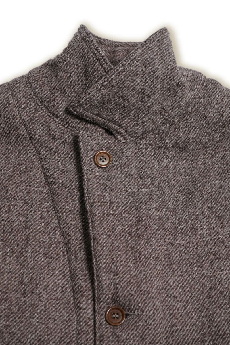 "SHERRY"は、ワークウエアを土台に、ハンティングジャケットやミリタリーウェアなどさまざまなユーティリティウエアの要素を取り入れ再構築した、THE CORONA UTILITY完全オリジナルデザインのジャケットです。このジャケットは、CORONAの中でカジュアルテーラードジャケットのような立ち位置のアイテムです。生地はウール×ポリエステル×リネン混紡素材。ウールのふんわり感とリネンのシャリ感が組み合わさ ったツイードのような、暖かみのある生地です。
