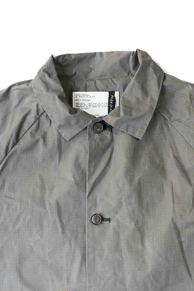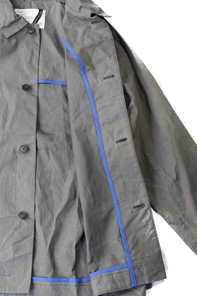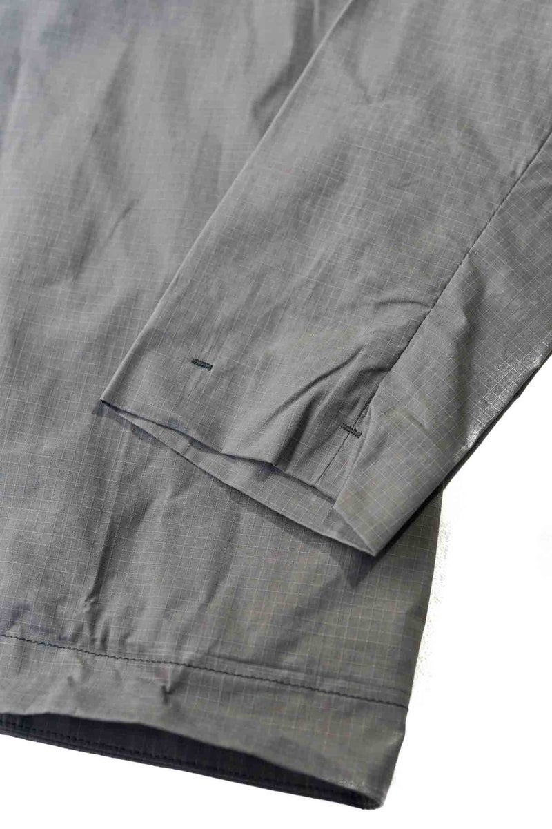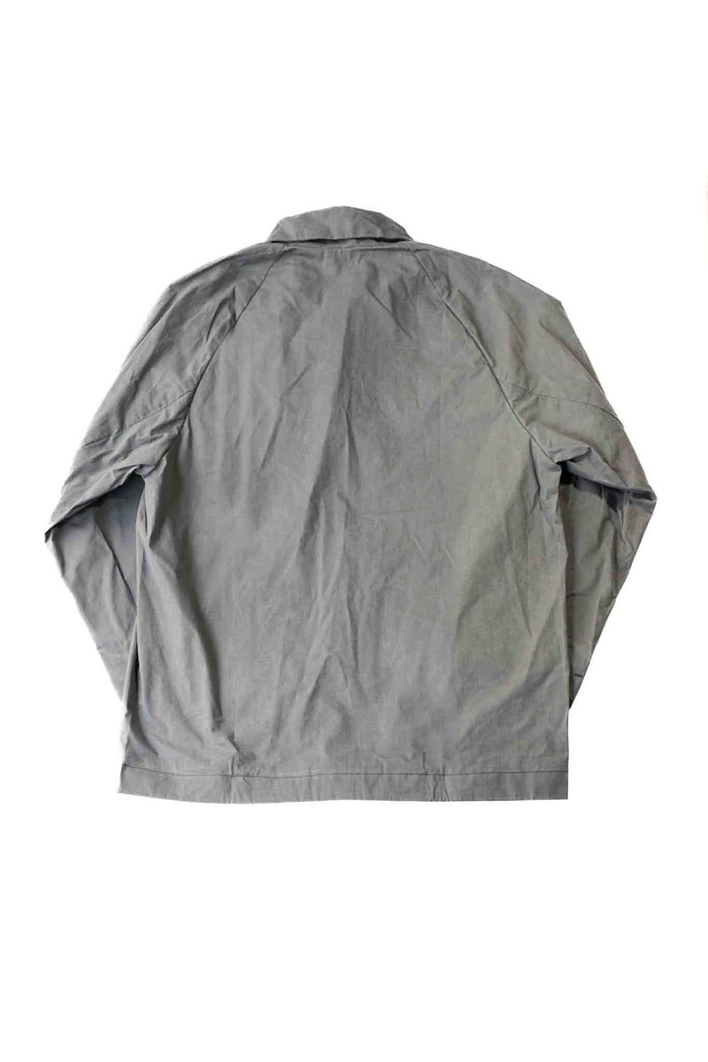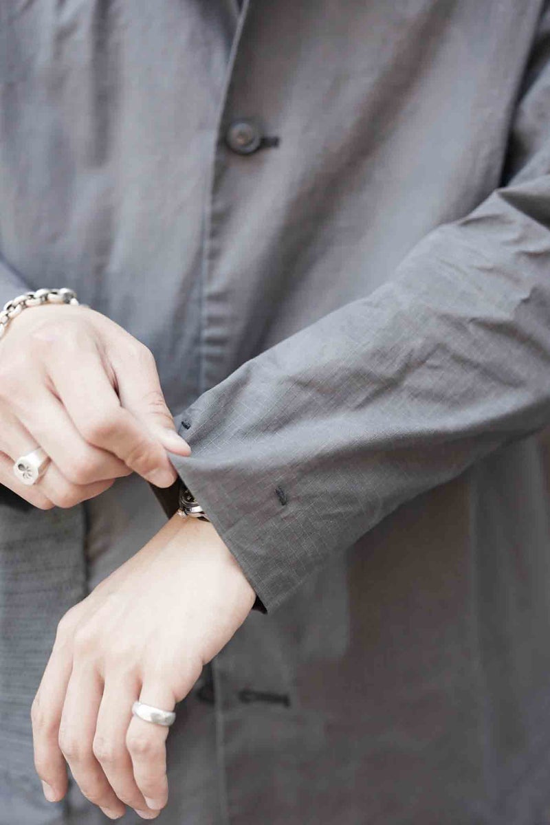 シックながら清涼感を感じさせるグレーと、細かなリップストップのドライワックスコットン生地が醸し出す独特の雰囲気があるジャケット。パッチポケットには奄美大島に古くから伝わる手織りのコットン生地"大島紬"を用いています。生地は、今なお世界最高峰のワックスコットンを生産し続けるイギリスの"HALLEY STEVENSONS社"製。製作は、かつてワックスジャケットの代名詞として知られる英国のブランドの洋服を手がけていたファクトリーが担っています。