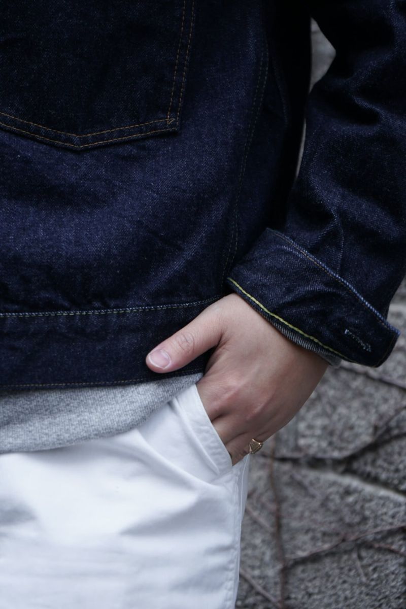 縫製はジーパン同様綿糸縫製にこだわることでデニム生地と共に縫製糸もエイジングしていきます。BONCOURAのこだわりと熱量が詰まったGジャンを是非育てていただきたいです。
