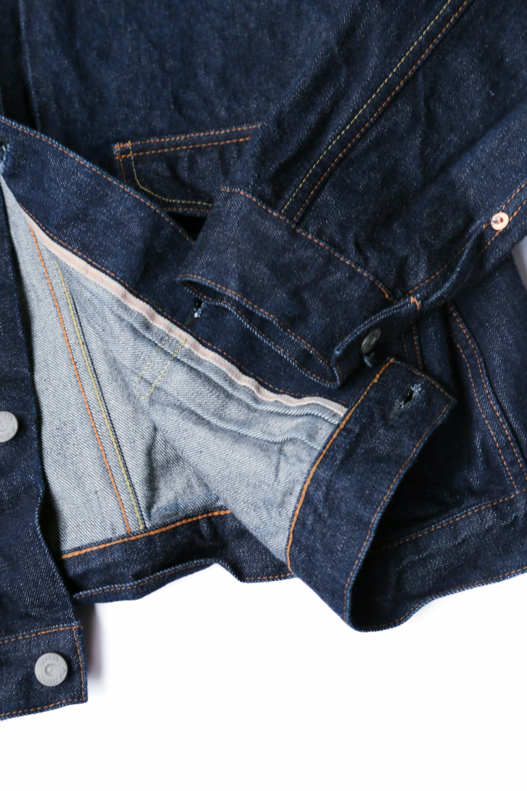 パーツも勿論妥協無くBONCOURA謹製オリジナルパーツを使用。着込んで行くことでパーツもデニムと同じようにエイジングしていきます。縫製はジーパン同様綿糸縫製にこだわることでデニム生地と共に縫製糸もエイジングしていきます。BONCOURAのこだわりと熱量が詰まったGジャンを是非育てて頂きたいです。