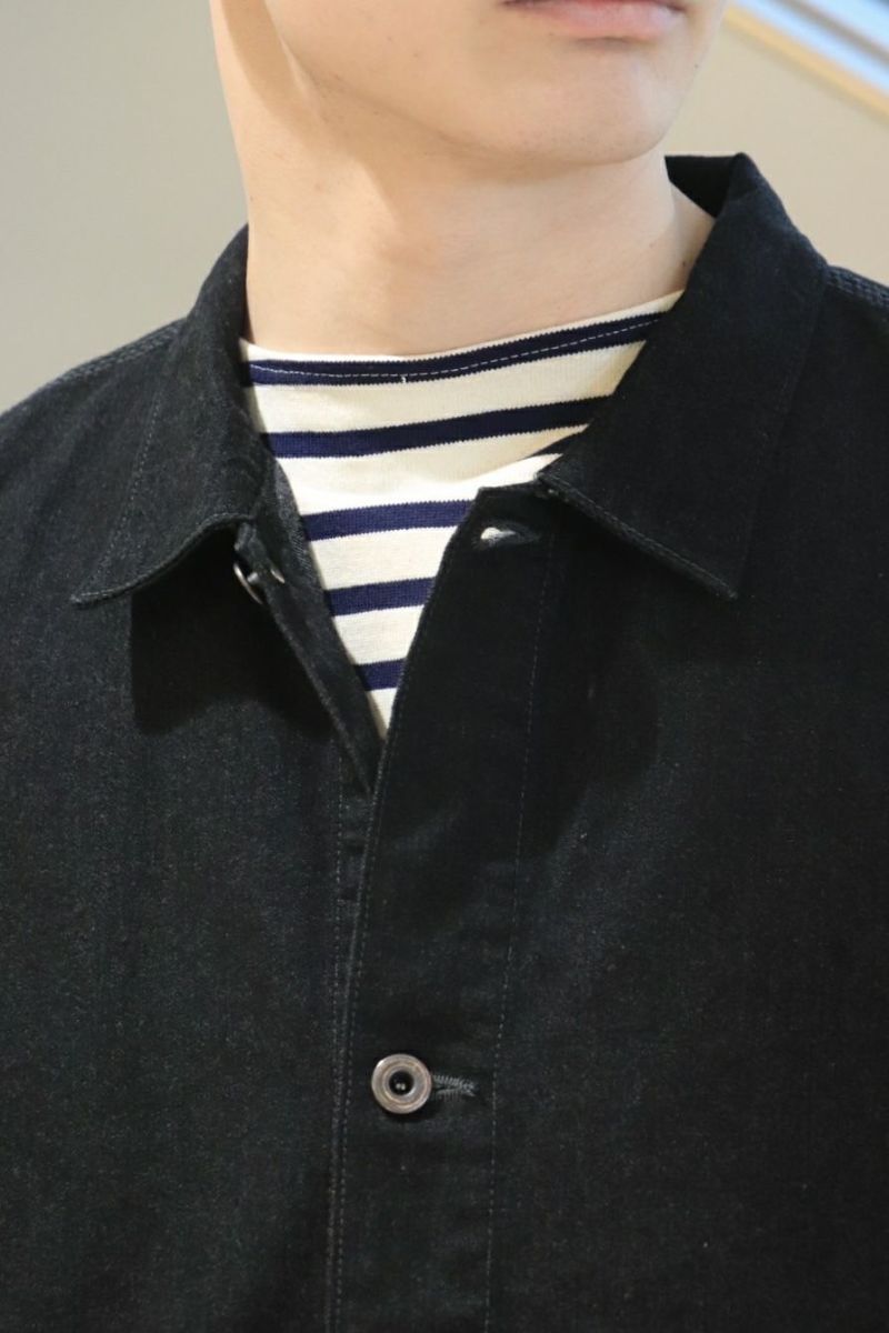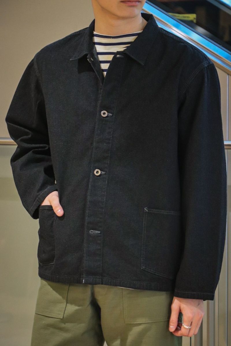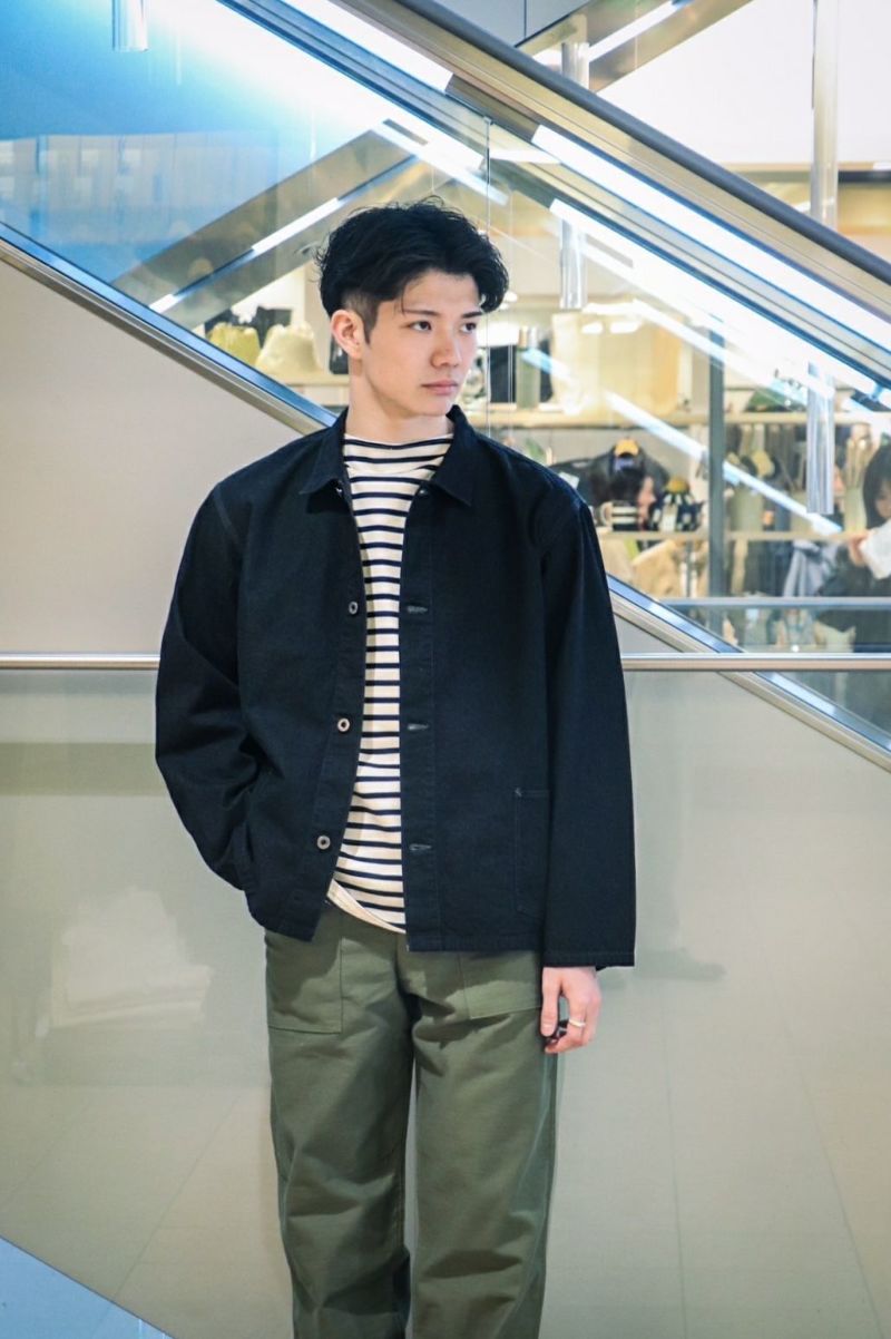着丈が短めなシンプルなカバーオール。(40'Sのカバーオールがデザインソースとなりブランドを代表する品番です)身巾にはゆとりがあり、着丈が短いので一般的なデニムカバーオールとは少し違ったシルエットが魅力です。同生地のパンツと合わせて着るとユニフォーム感もでて◎