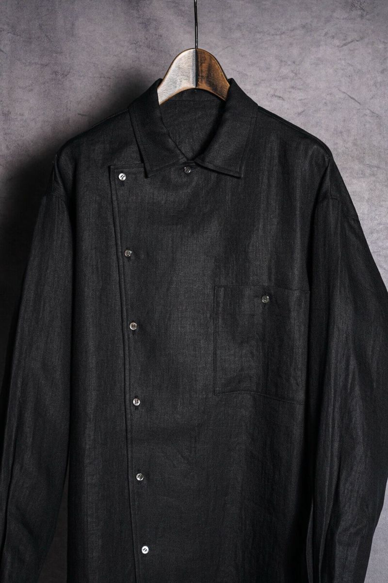 フロントを閉めて着るも良し、開けてドレープ感を楽しむも良し、襟を折り返してジャケットのように着こなすのも良しと、様々な着方を楽しめる、他には無い一枚となっています。