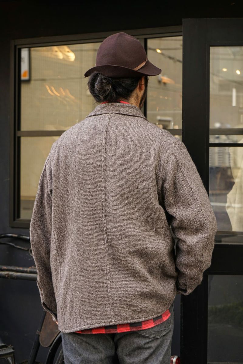 "SHERRY"は、ワークウエアを土台に、ハンティングジャケットやミリタリーウェアなどさまざまなユーティリティウエアの要素を取り入れ再構築した、THE CORONA UTILITY完全オリジナルデザインのジャケットです。このジャケットは、CORONAの中でカジュアルテーラードジャケットのような立ち位置のアイテムです。生地はウール×ポリエステル×リネン混紡素材。ウールのふんわり感とリネンのシャリ感が組み合わさ ったツイードのような、暖かみのある生地です。