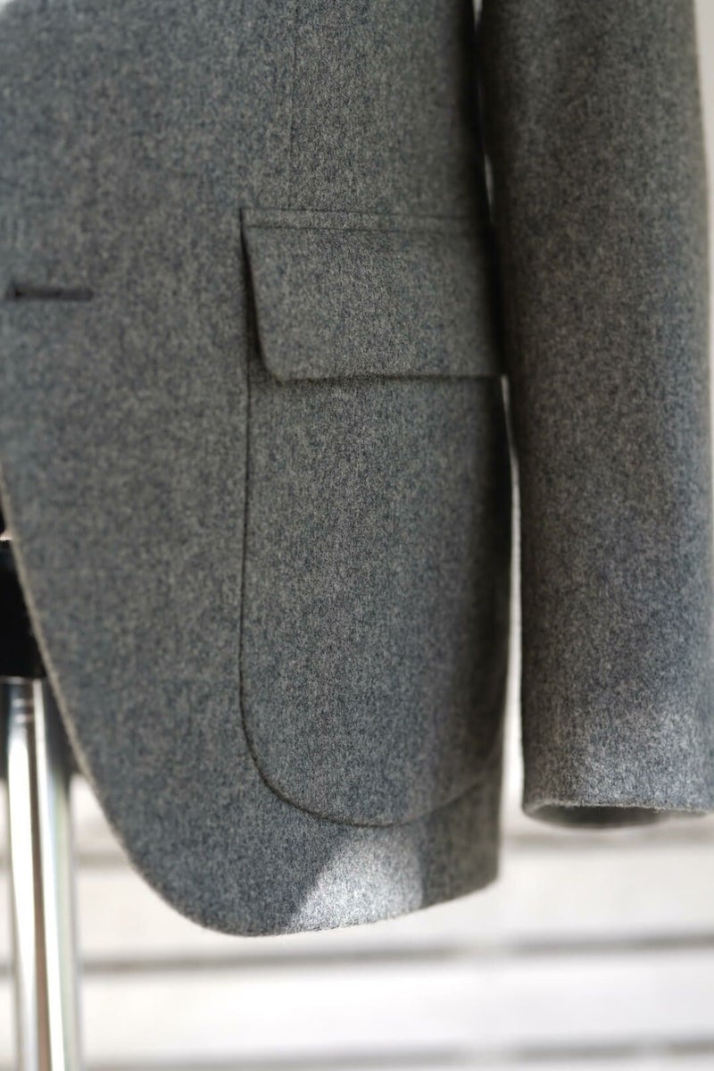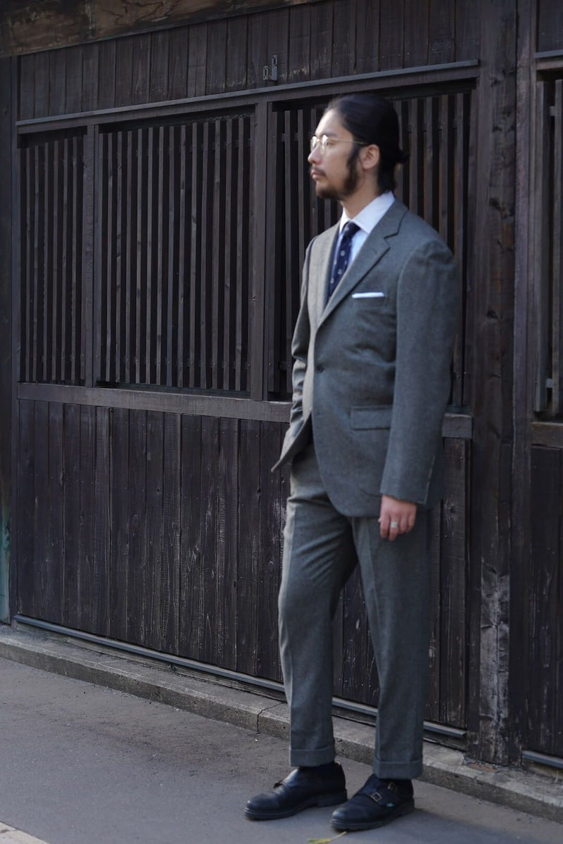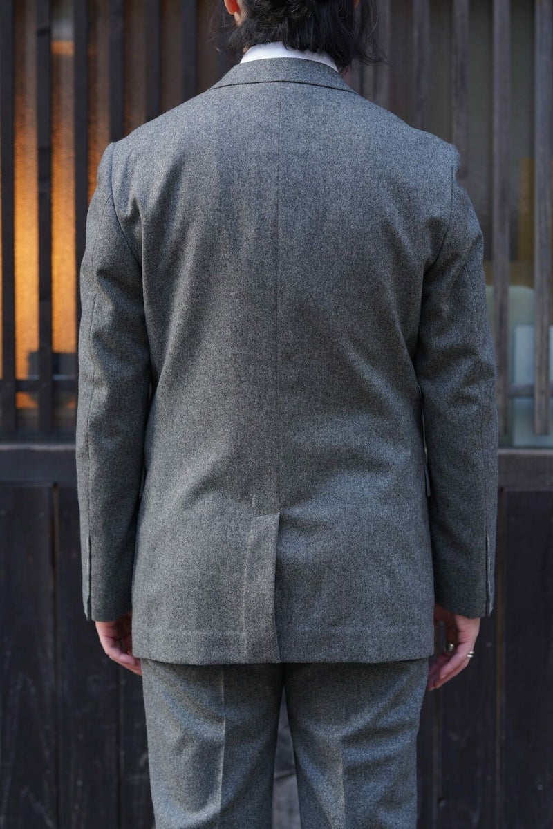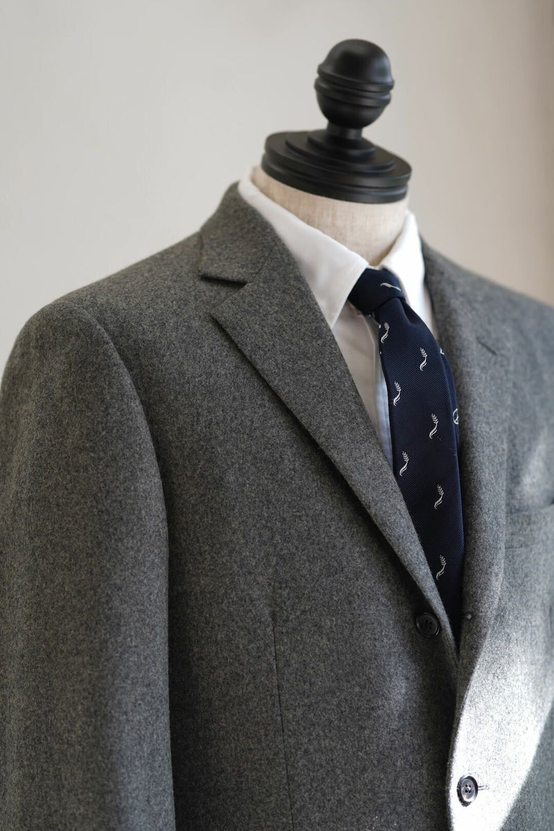 1960年代のアメリカントラディッショナルなスタイルを踏襲したグレーフランネルのスポーツコート。 表にステッチの無いラペルに、フロントダーツでやや絞られたウエスト、胸ポケットは箱の仕様で、50’S Sports Coatと比べシャープで洗練された印象の1着となっています。 素材にはイギリスの老舗生地メーカー、FOX BROTHERSのフランネル生地を採用。 ウィンザー公やウィンストン・チャーチル、ケーリー・グラントらの著名人からも愛され、1950年頃までは同社が商標も保持していたという「フランネル」は、いま現在も創業当時からほとんど変わらぬレシピを用いて織られ続けており、サヴィル・ロウを始めとした世界中の名門テーラーで扱われている歴史と信頼のある生地です。 素材や仕立てはもちろんのこと、サイズ感やシルエット含め細部までこだわり抜かれた、ブランドを代表するアイテムです。 表地 : 100% WOOL 裏地 : 100% CUPRO KENNETH FIELD / 60'S SPORTS COAT(FOX BROTHERS FLANNEL) Price ¥121,000(税込)