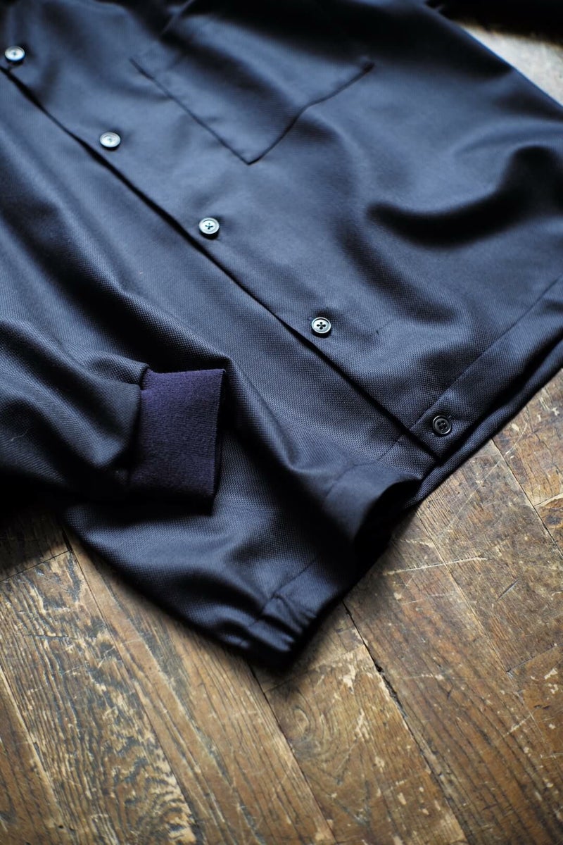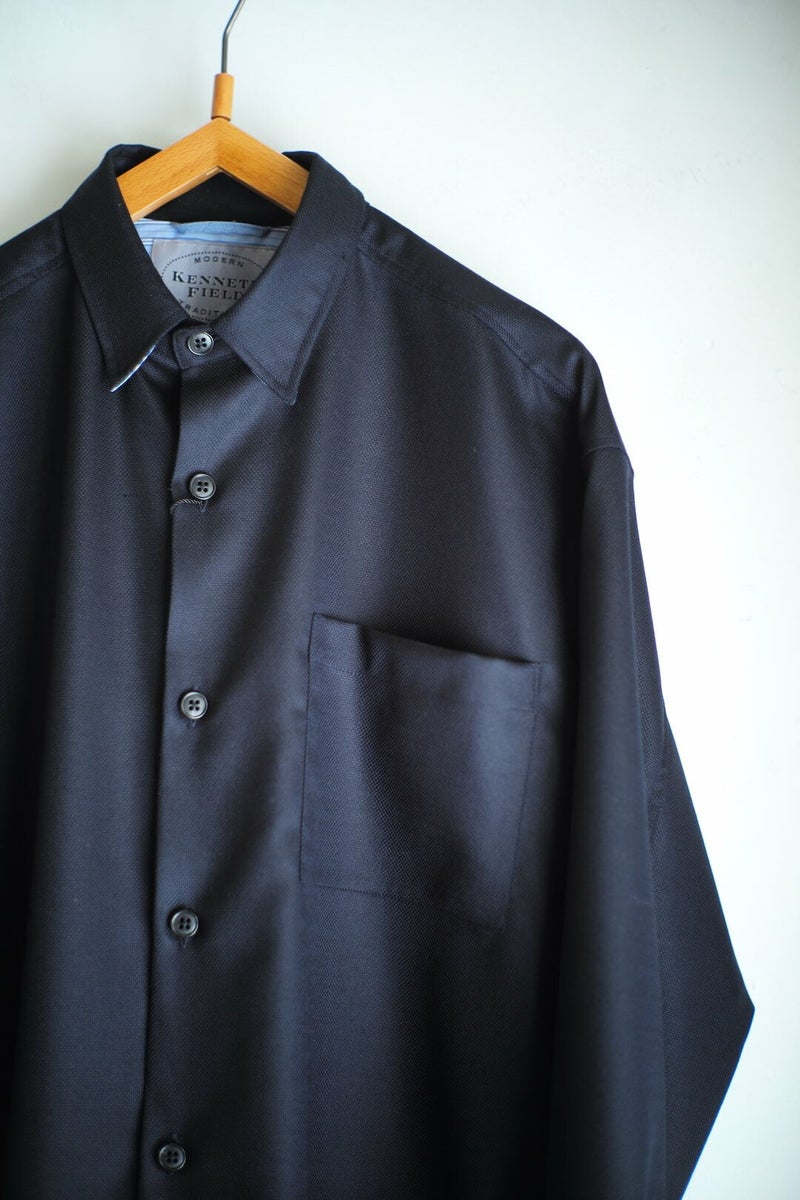 ゆったりとした身幅と短めに設定された着丈が特徴的なシャツジャケット。素材にはスポーツコートに用いられるウールホップサック生地を使用しています。袖リブやスナップボタンで留められる衿などユニークな仕様が魅力的な1着です。 WOOL 100% KENNETH FIELD / EZ-JAC V Price ¥33,000(税込)
