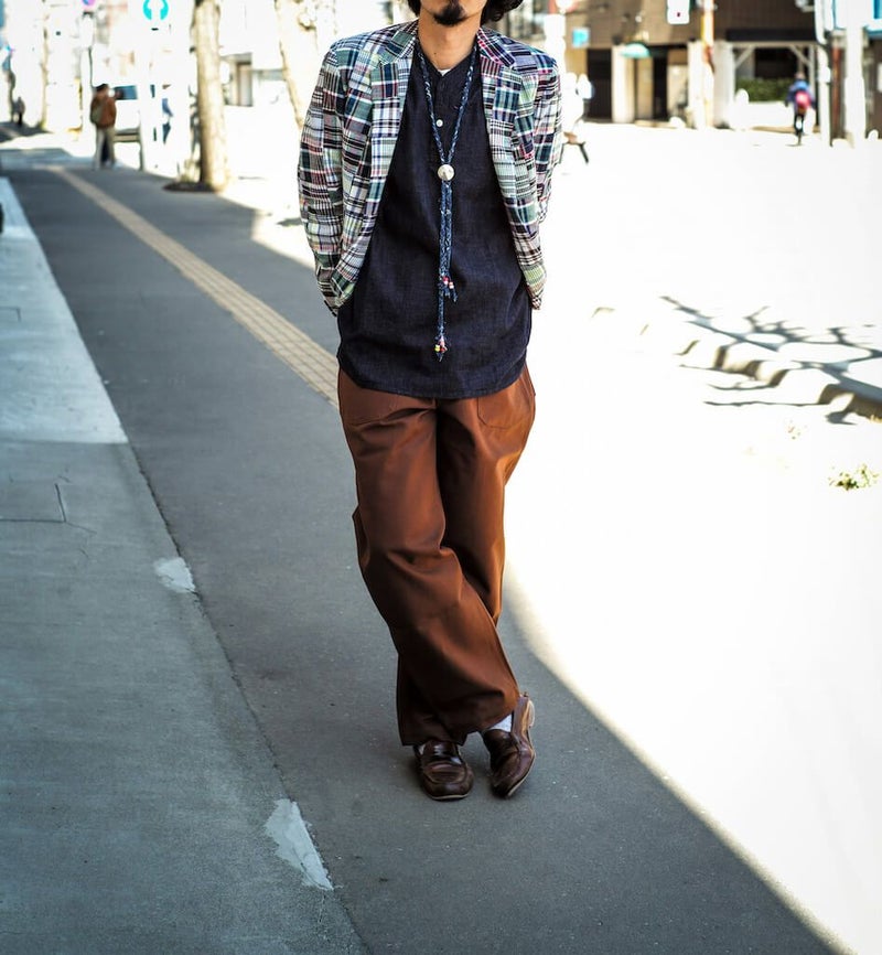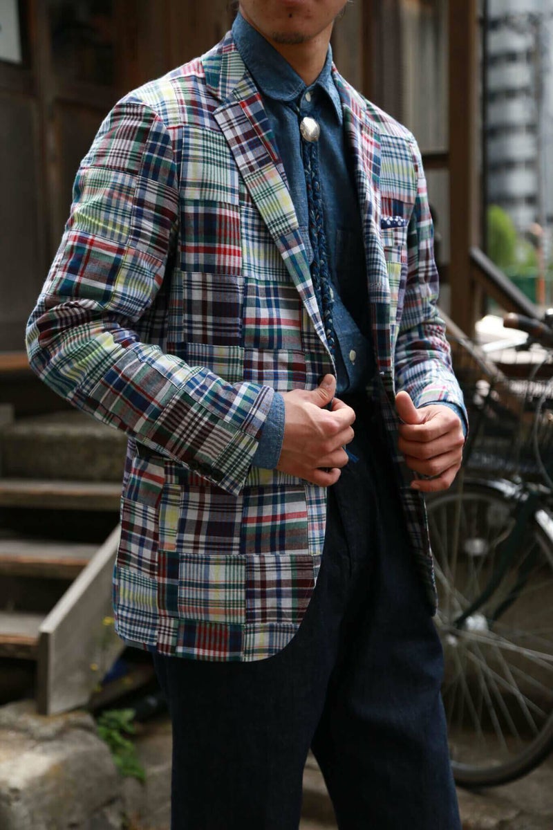 KENNETH FIELD の新作50'S UNCON ?? C/L POCKET。 アメリカントラッドを代表するMADRAS PATCH WORKの生地を採用しています。 元々インドにルーツがあるマドラスチェックの生地ですが、その後アメリカへと渡り夏の定番アイテムへと移り変わっていきます。 ブルックスやラルフなどは、その代表格ではないでしょうか。 優れた通気性が特徴的なマドラスの生地は、夏場の素材として最適です。 インナーに、ポロシャツやカットソーで、ラフに着たくなる一枚です。 同素材のGURUKA TROUSERSと合わせてセットアップでも楽しんで欲しいです。 アンコンジャケットは、気兼ねなく扱えるのも魅力の一つです。 シャツジャケット感覚で、軍パンにさらっと... 100% COTTON ※こちらの商品はブログでも詳しくご紹介しております。 https://archstyle.tv/blog/ KENNETH FIELD / 50'S UNCON ?? MADRAS PATCH WORK Price ¥66,000(税込)