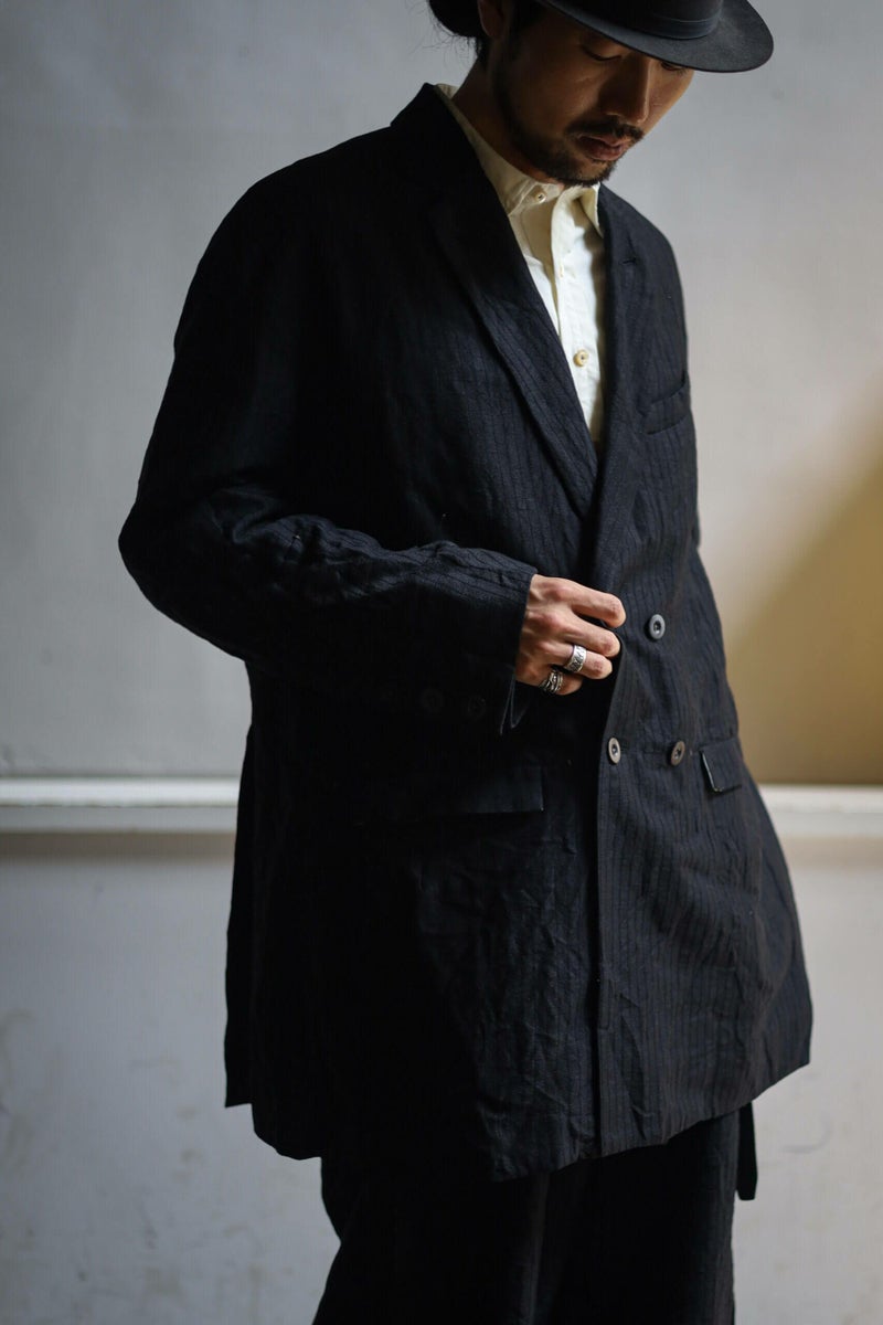 KLASICA(クラシカ) ゆったりとしたシルエットのセミロング丈ダブルブレステッドブレザーです。モダンかつクラシックな雰囲気がKLASICAらしい1着。ショート丈のコートのような着こなしも楽しめます。同素材のジャケットとセットアップでの着用もおすすめです。 素材はオーストラリア産のウールを経糸に、緯糸は甘撚りのリネンを使用した、一列飛ばしの変則的な高密度ヘリンボーン。洗い乾燥加工により、柔らかな厚みとまろやかな風合いが引き出されている。 <素材> LINEN 54% / WOOL 46% <生産国> MADE IN JAPAN KLASICA / HELEN HB PRICE ¥134,200(税込み) 品番 : 24F-WJK-B11