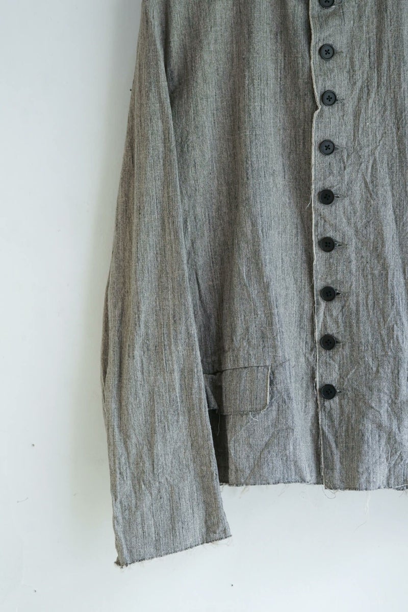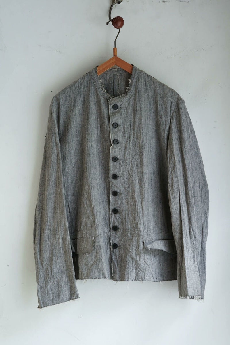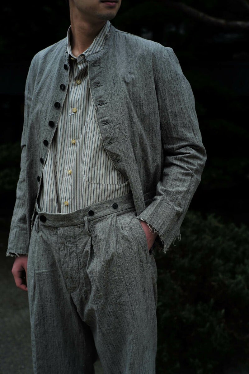1900年代初頭、フランスの音楽家が着ていたとされるジャケットをベースとしたKLASICA(クラシカ)定番のCIRCA JACKETです。素材にはスペック染め糸とスラブ糸で織り上げられたコットン生地を使用しています。ムラ感と凹凸感のある風合いが雰囲気抜群です。裾と袖口は裁ち切り仕様になっており、製品洗いによる解れが独特な表情を生み出しています。 100% COTTON KLASIC / CIRCA JACKET Price ¥57,200(税込)