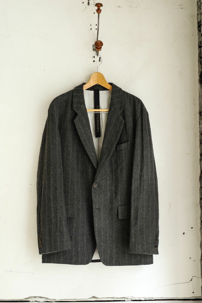 コートとジャケットの中間的な立ち位置で着れる一着です。ブランド独自のドレーピング技術とパターンワークを駆使して作られており、ゆったりとしているのに美しいシルエットが特徴。