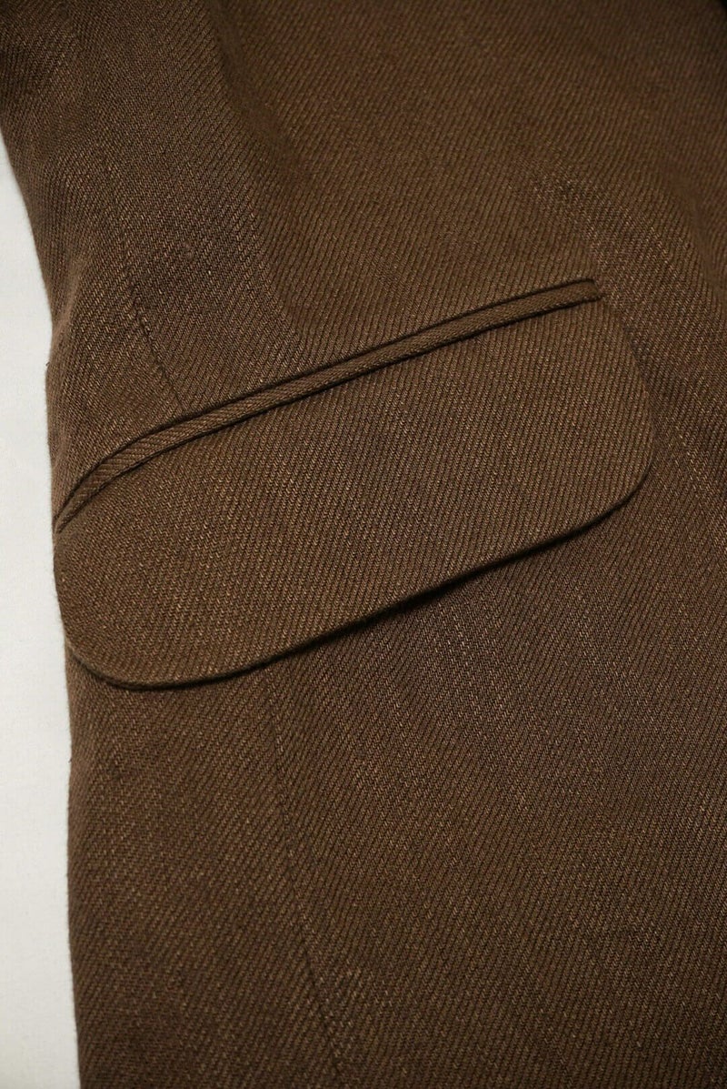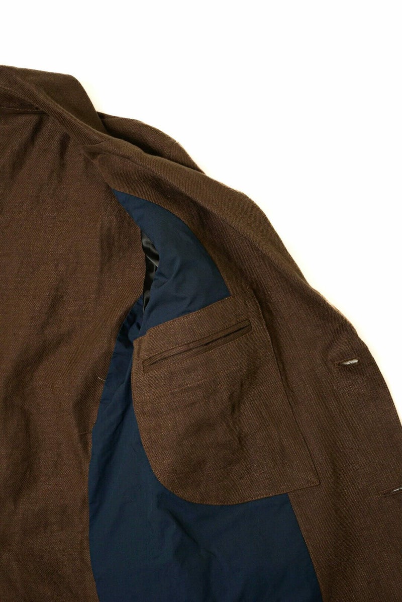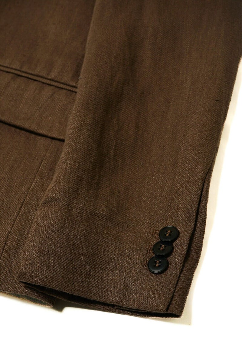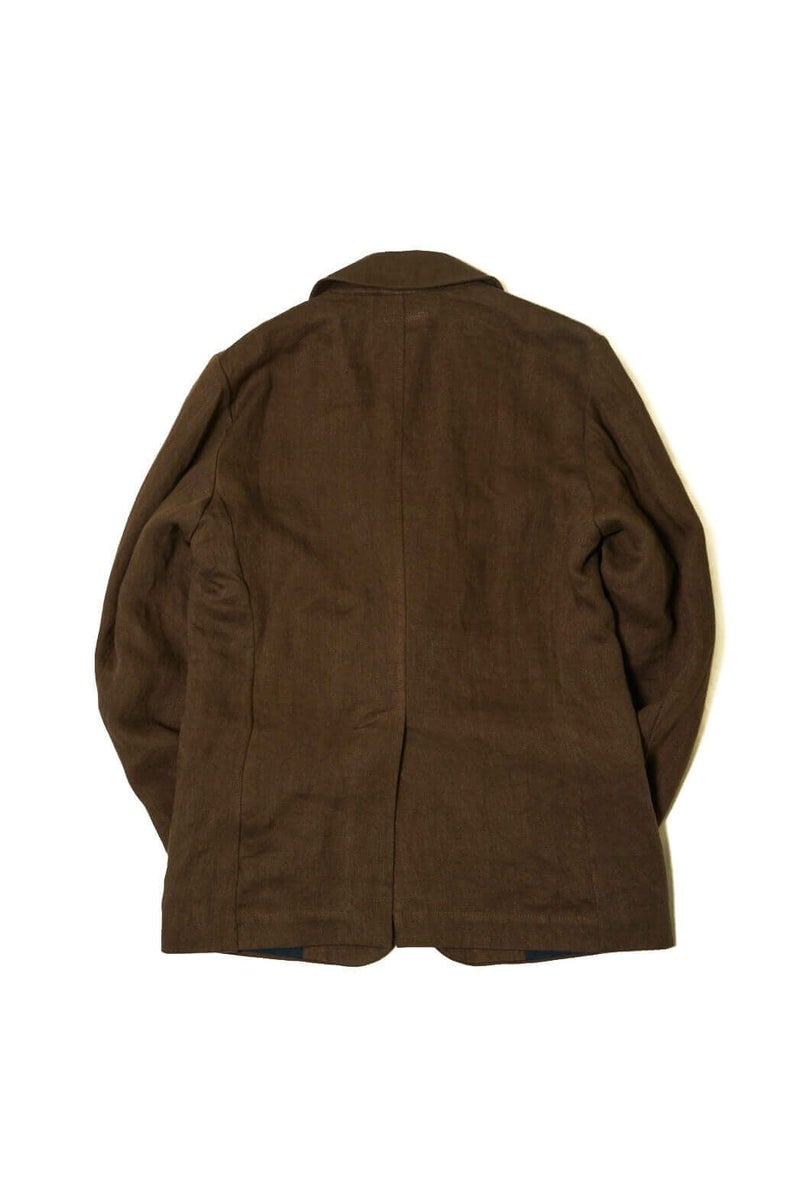 旧式の織機で織り上げた風合いの良いリネンの生地を使用した2Bジャケット。同素材を使用したパンツとセットアップでの着用もおすすめです。