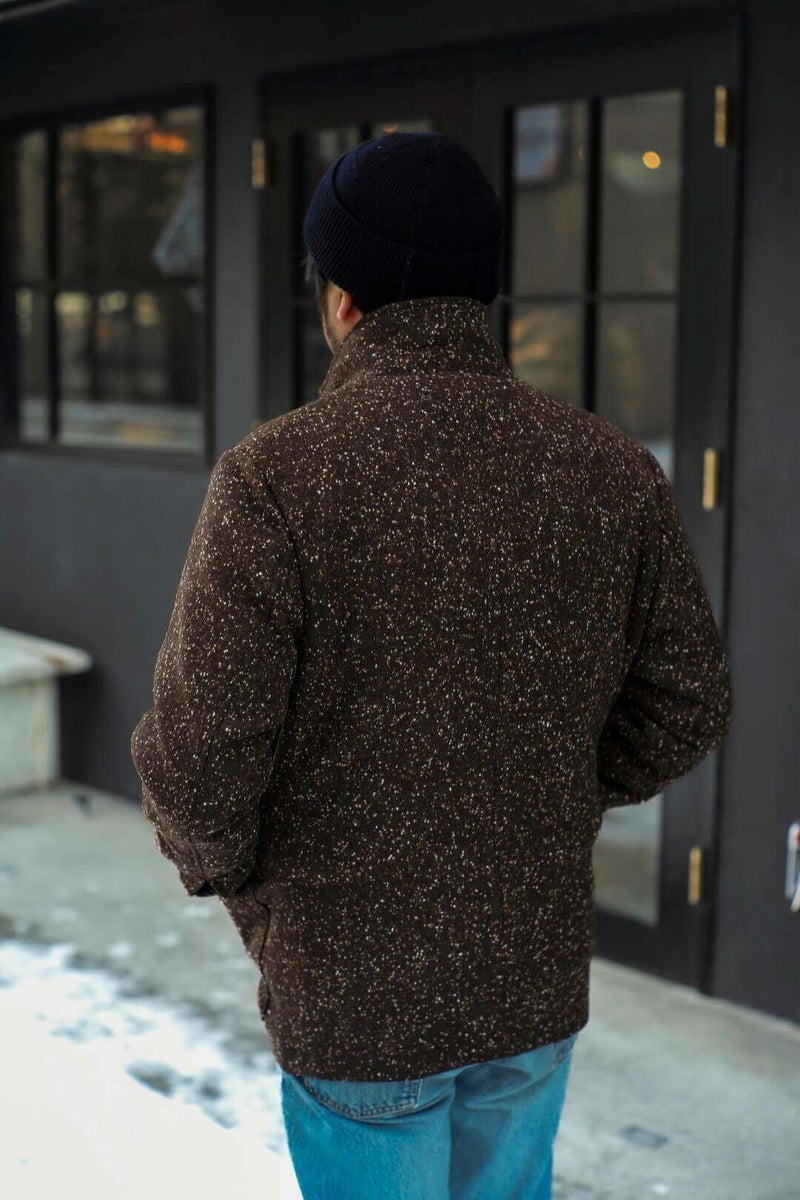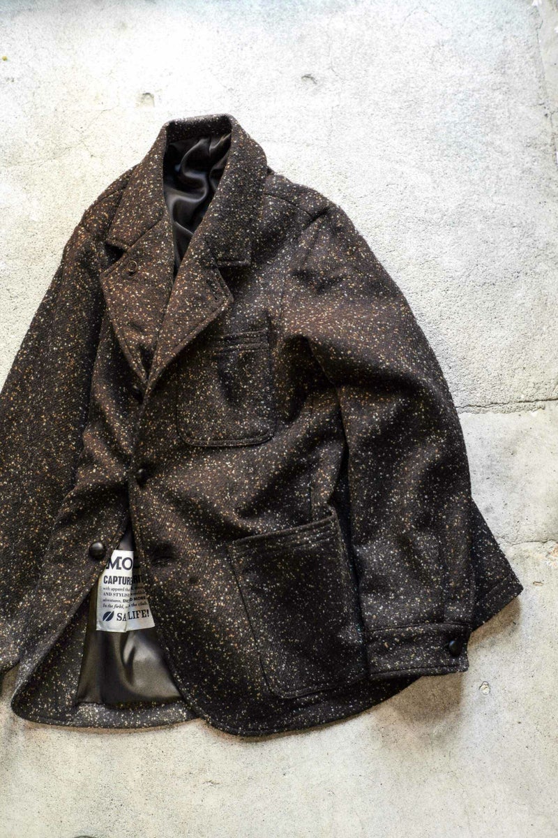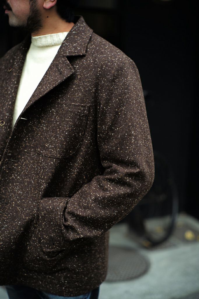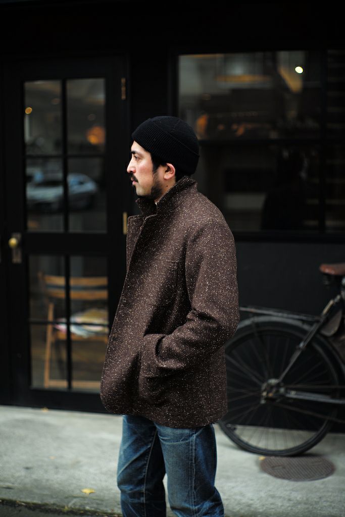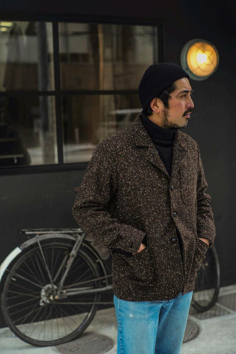 世界三大ウール産地の1つ、愛知県の尾州で織られたホームスパン生地を贅沢に使用したジャケットの名称は、「AMBITIOUS JACKET」。北海道開拓の父、ウィリアム・スミス・クラーク博士の有名な台詞「Boys, be ambitious」に敬意を表して名付けました。