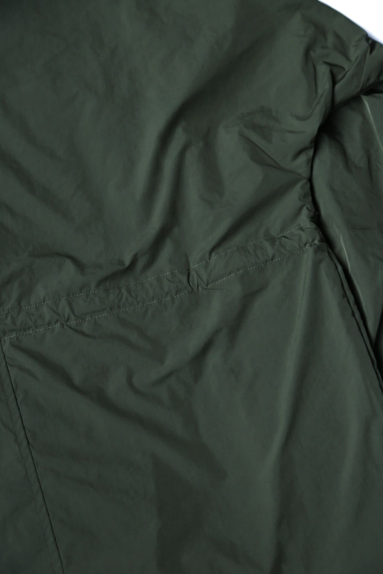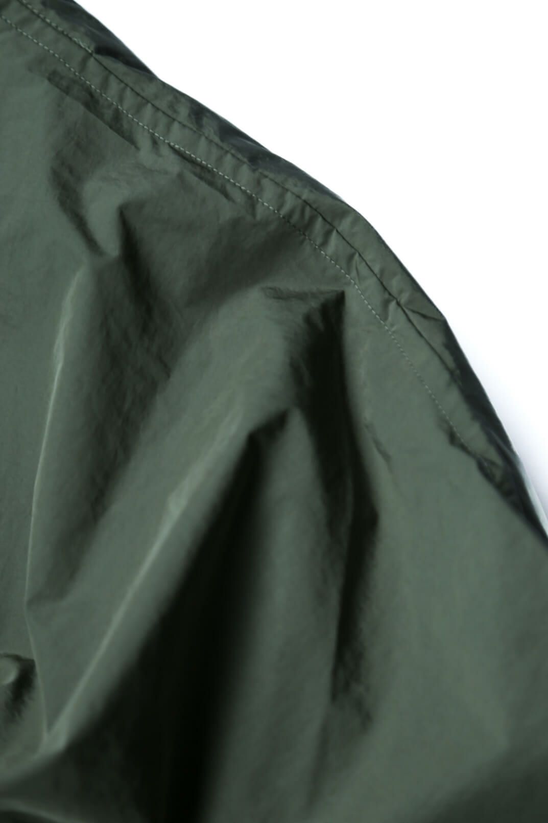 rdv o globe(ランデヴー オー グローブ) 素材にはポリエステル・ナイロンを複合したマイクロファイバーを高密度に織り上げ、超高収縮加工を施したことによって生まれる、程よいヌメリ感ときめ細かな風合いが特徴です。すっきりとした襟元のデザインにミリタリーライクなポケットやエルボーパッチの機能的なデザインが特徴です。ウエストの内側のドローコードでシルエットが調整可能となります。 <素材> NYLON 57% / POLYESTER 43% <生産国> MADE IN JAPAN 商品についてのブログはこちら rdv o glob / LENNY CH. PRICE : ¥46,200(税込み) 品番 : 241CH004