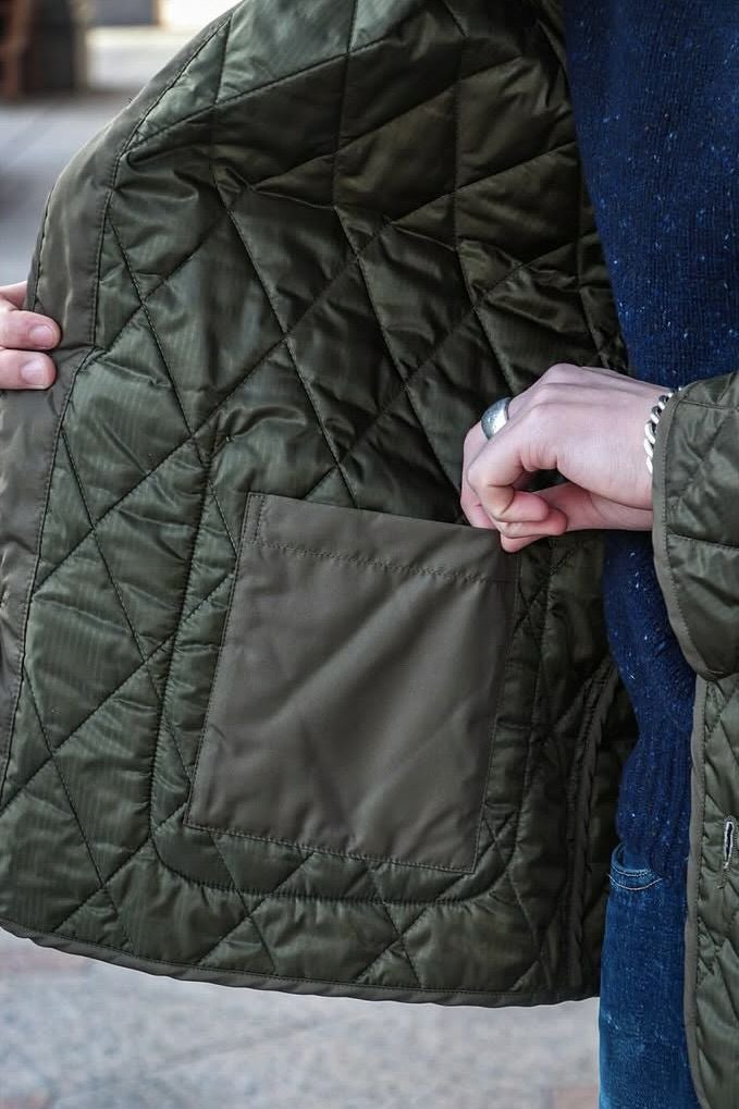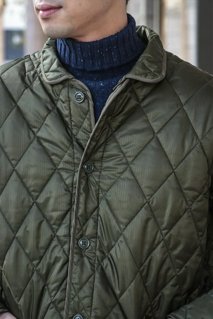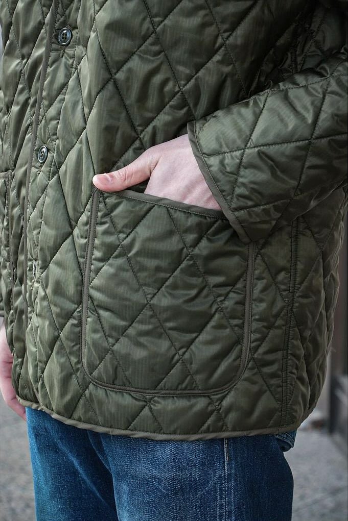 A VONTADE(ア ボンタージ) USミリタリーパーカーのライナーから着想を得てデザインされた、キルティングジャケットです。 素材はナイロン100%のミリタリーマイクロリップを使用。 中綿には、抗菌・防臭・蓄熱機能を持つハイテクインサレーション素材”QUOISM”を、ダイヤ型のキルティングでラミネートしています。 ポケットや袖剥ぎなどすべての箇所にパイピングを施し、衿は取り外し可能なディタッチャブル仕様にして、着こなしの巾が出せるようにアレンジされています。 秋口にはカーディガン感覚の羽織として、冬場にはコートなどのインナーとしても使えるように、軽さと扱いやすさの両面からデザインされた中綿ジャケットです。 <素材> 表地 : 100% Nylon 中綿 : 100% Polyester <生産国> MADE IN JAPAN A VONTADE / Quilted Liner Jacket -Detachable Collar- PRICE : ¥39,600(税込み) 品番 : VTD-0552-JK